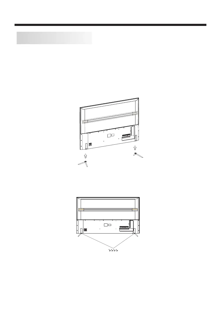 1. Locate the 2PCS of the base stand into the gap in the bottom of the TV , and check that it is