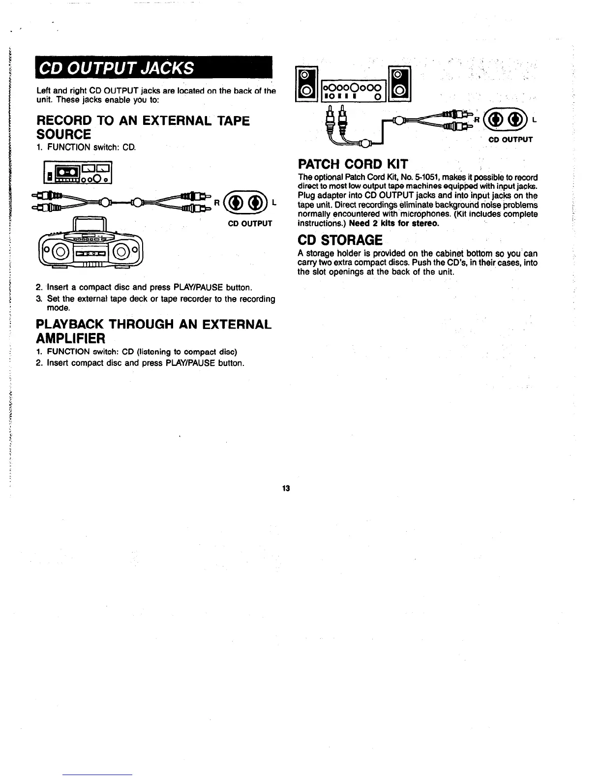 Plug adapter into CD OUTPUT jacks and into input jacks on the