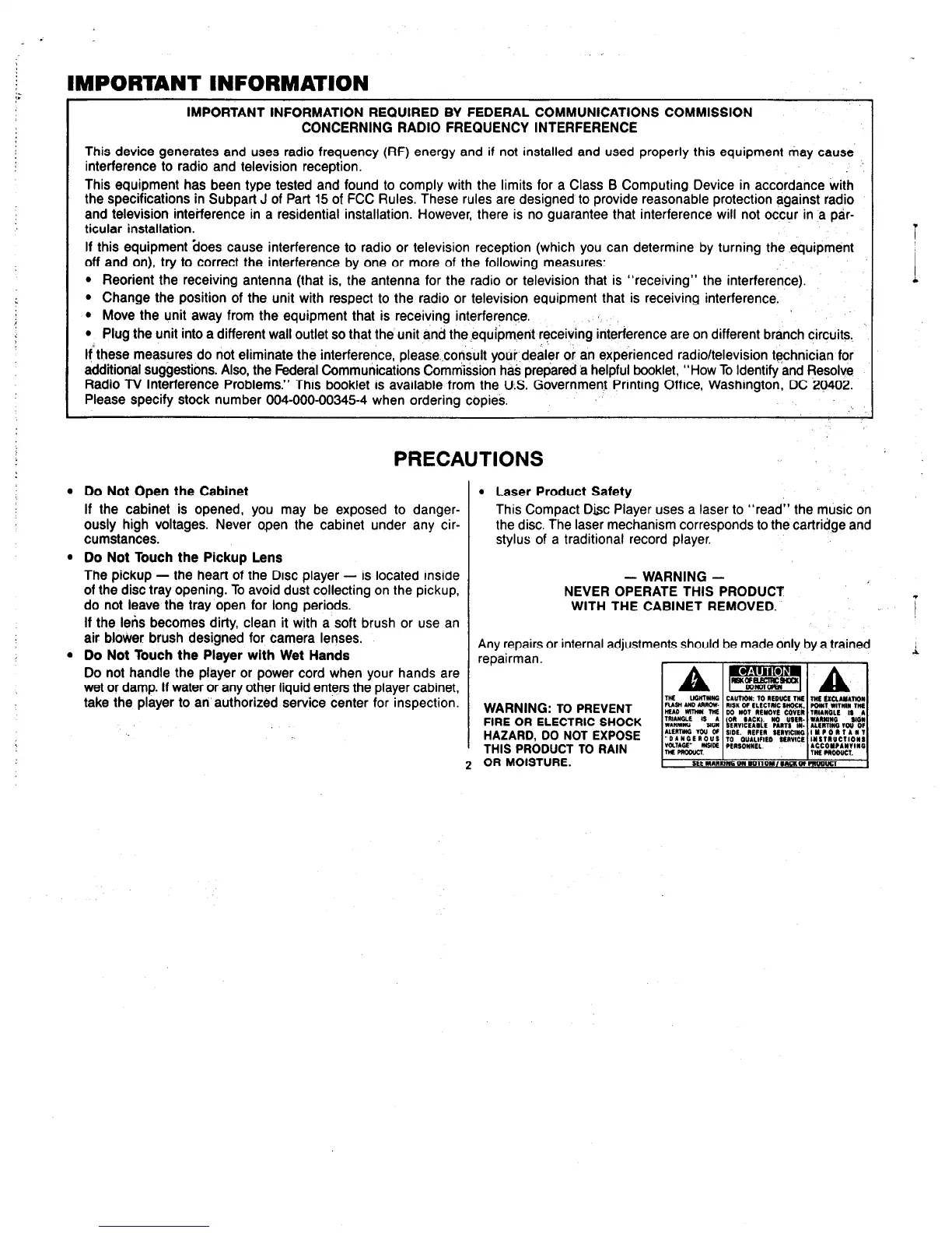 If the cabinet is opened, you may be exposed to danger- This Compact D&c Player uses a laser to “read” the music on