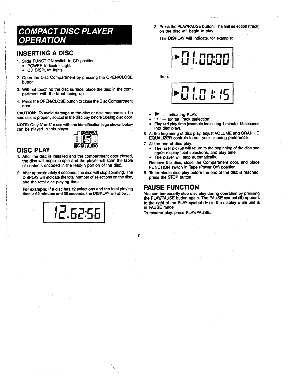 3. Press the PLAY/PAUSE button. The first selection (track)
