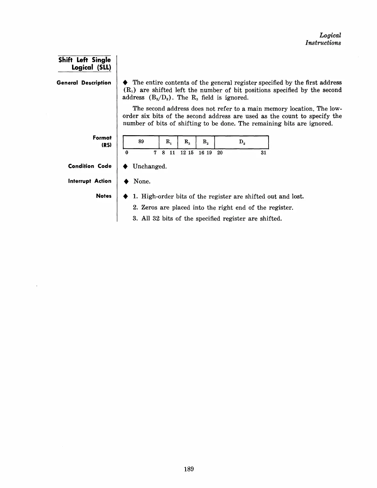 RCA Spectra 70 - Shift Left Single Logical (SLL)