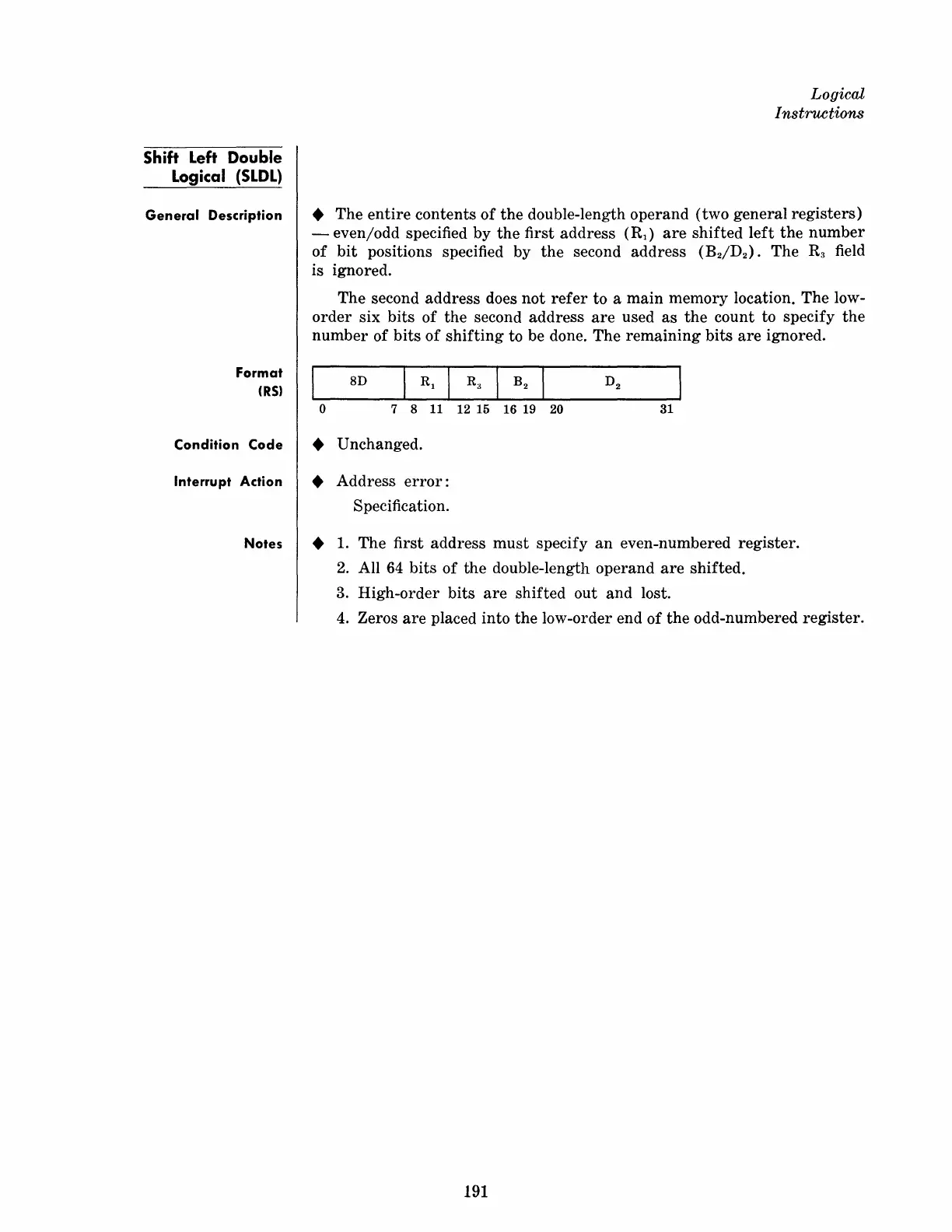 RCA Spectra 70 - Shift Left Double Logical (SLDL)