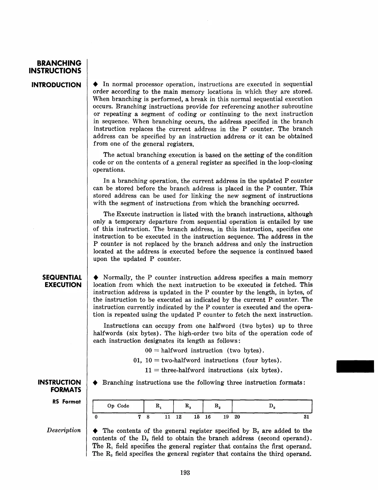 RCA Spectra 70 - Branching Instructions; Instruction Formats