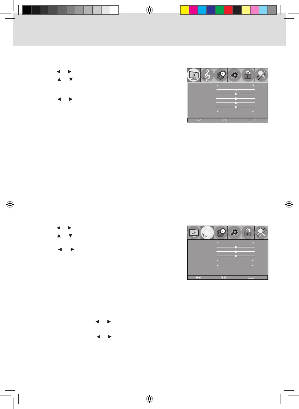 4. Use the or button to make adjustment. Press the TV