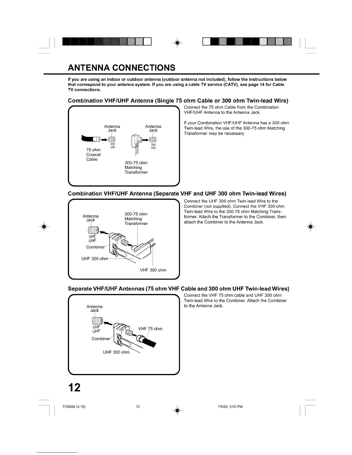 ,- -_ Connect the VHF 75 ohm cable and UHF 300 ohm