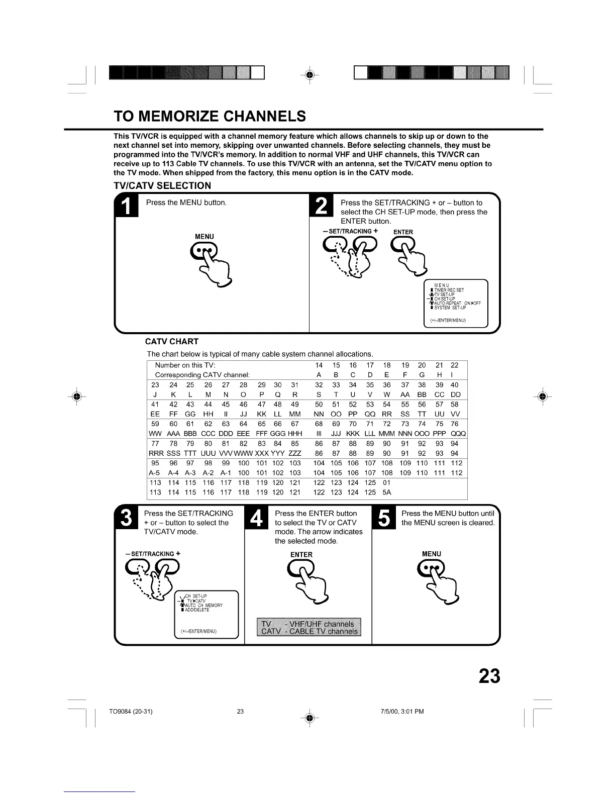 programmed into the TV/VCR's memory. In addition to normal VHF and UHF channels, this TV/VCR can