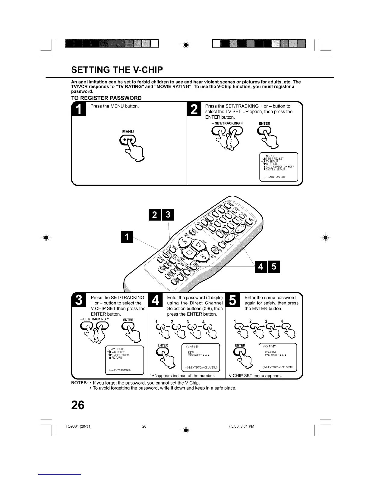 NOTES: • If you forget the password, you cannot set the V-Chip.