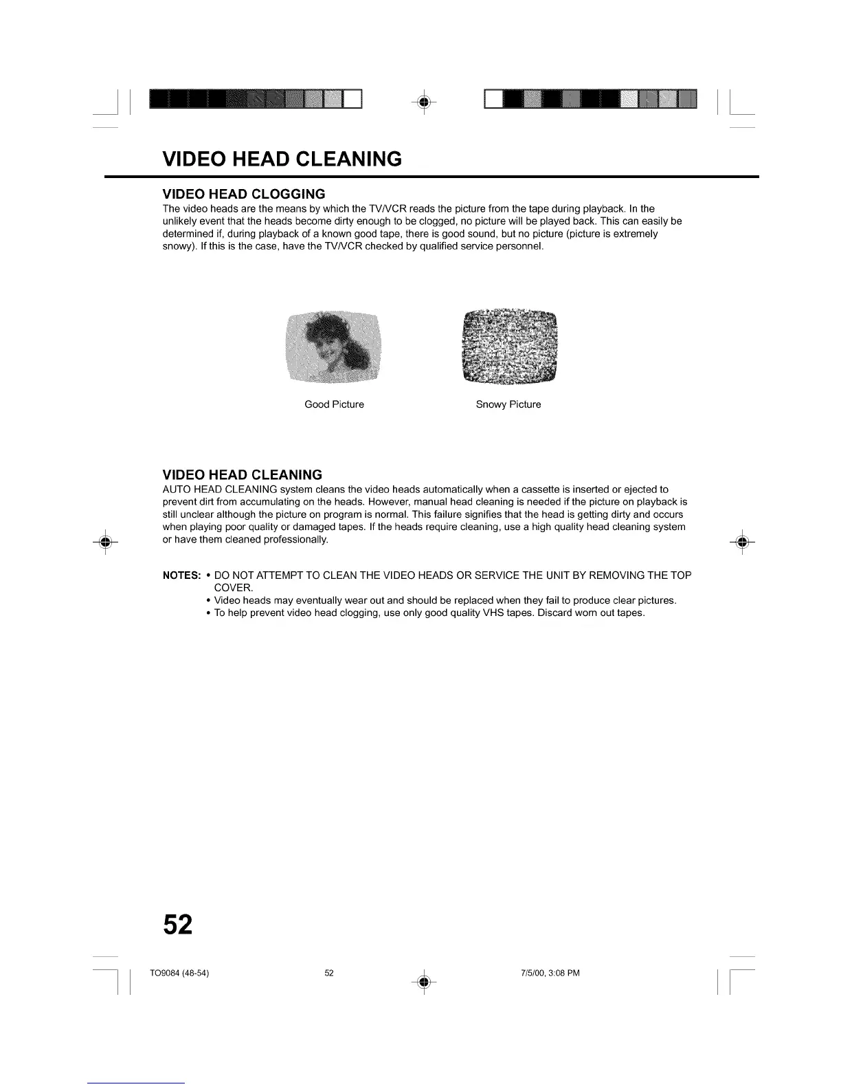 prevent dirt from accumulating on the heads. However, manual head cleaning is needed if the picture on playback is