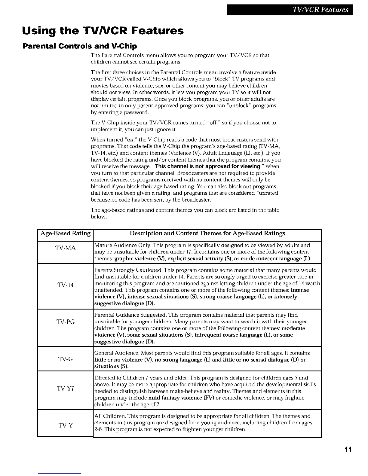 programs. That code tells the V-Chip the progranfs age-based rating (TV-MA,