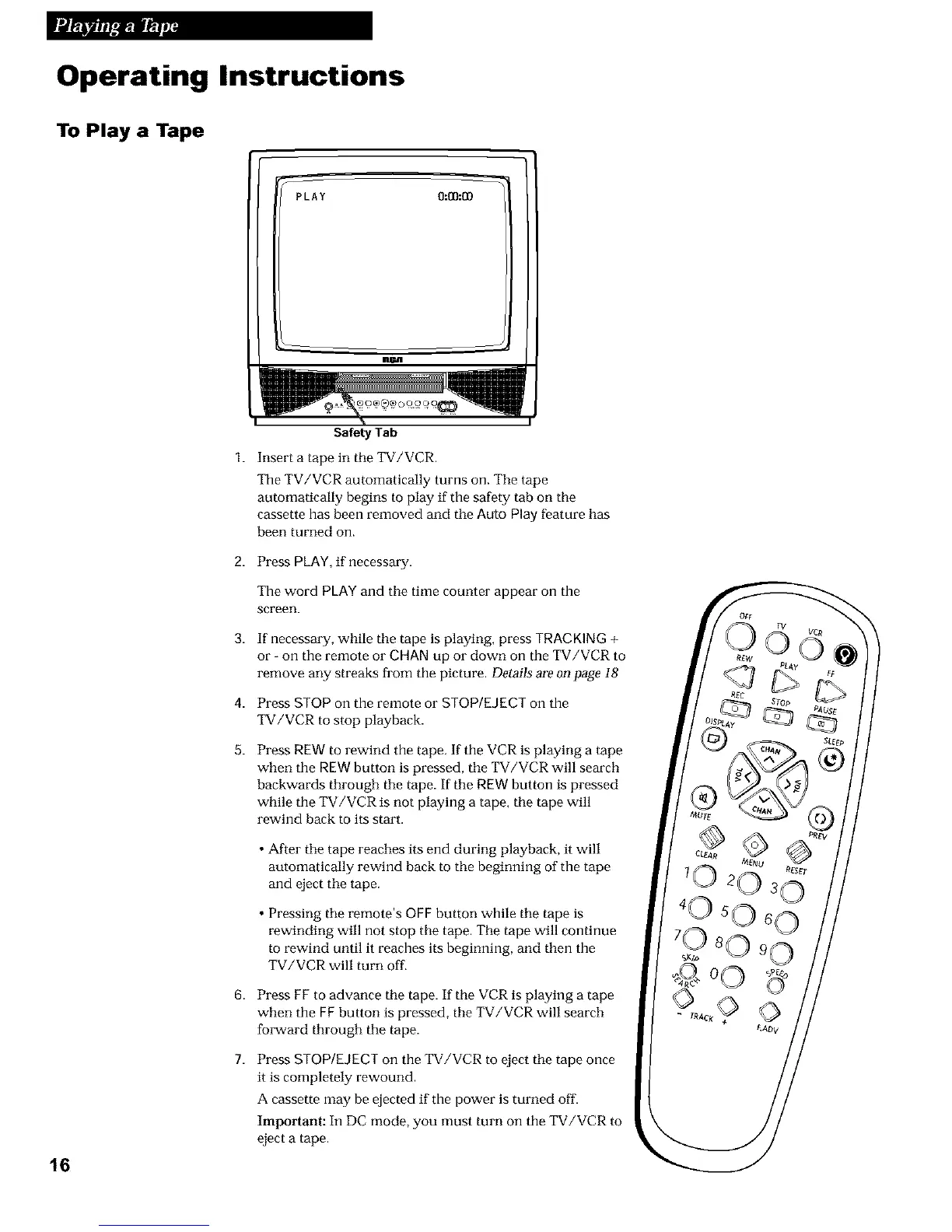 7. Press STOP/EJECT on the TV/VCR to eject the tape once