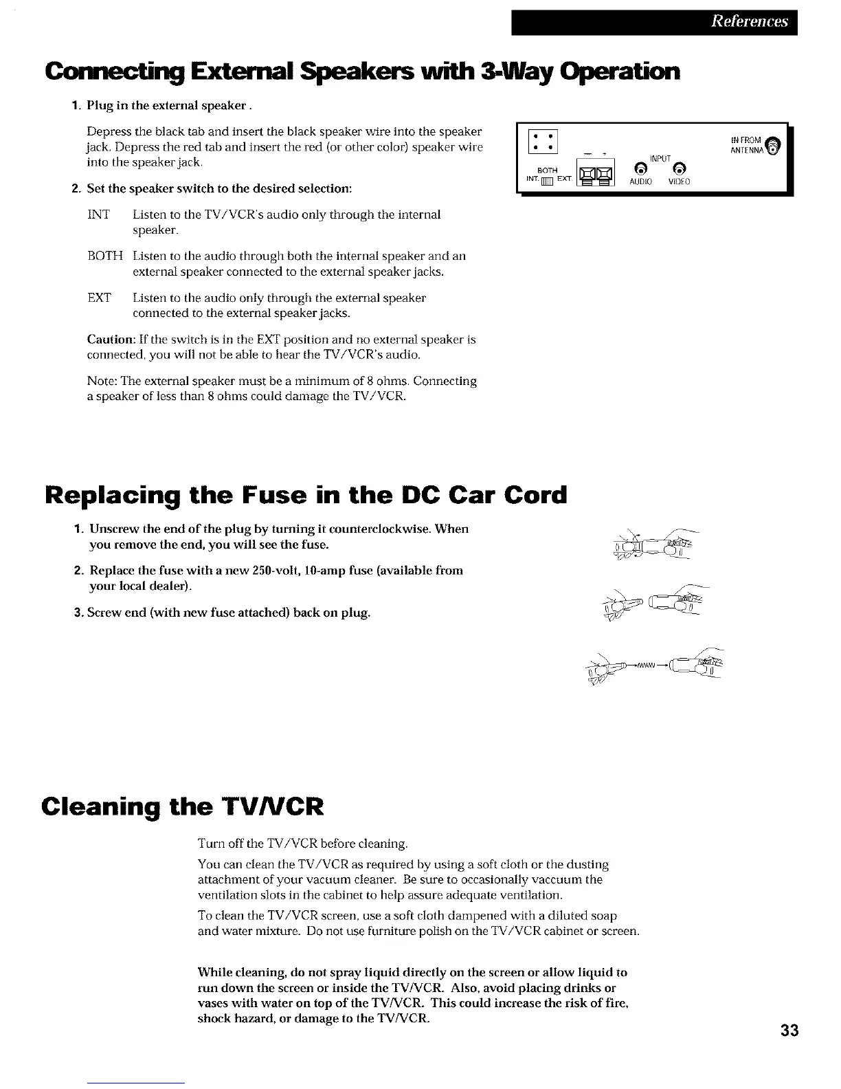 Turn off the TV/VCR before cleaning.