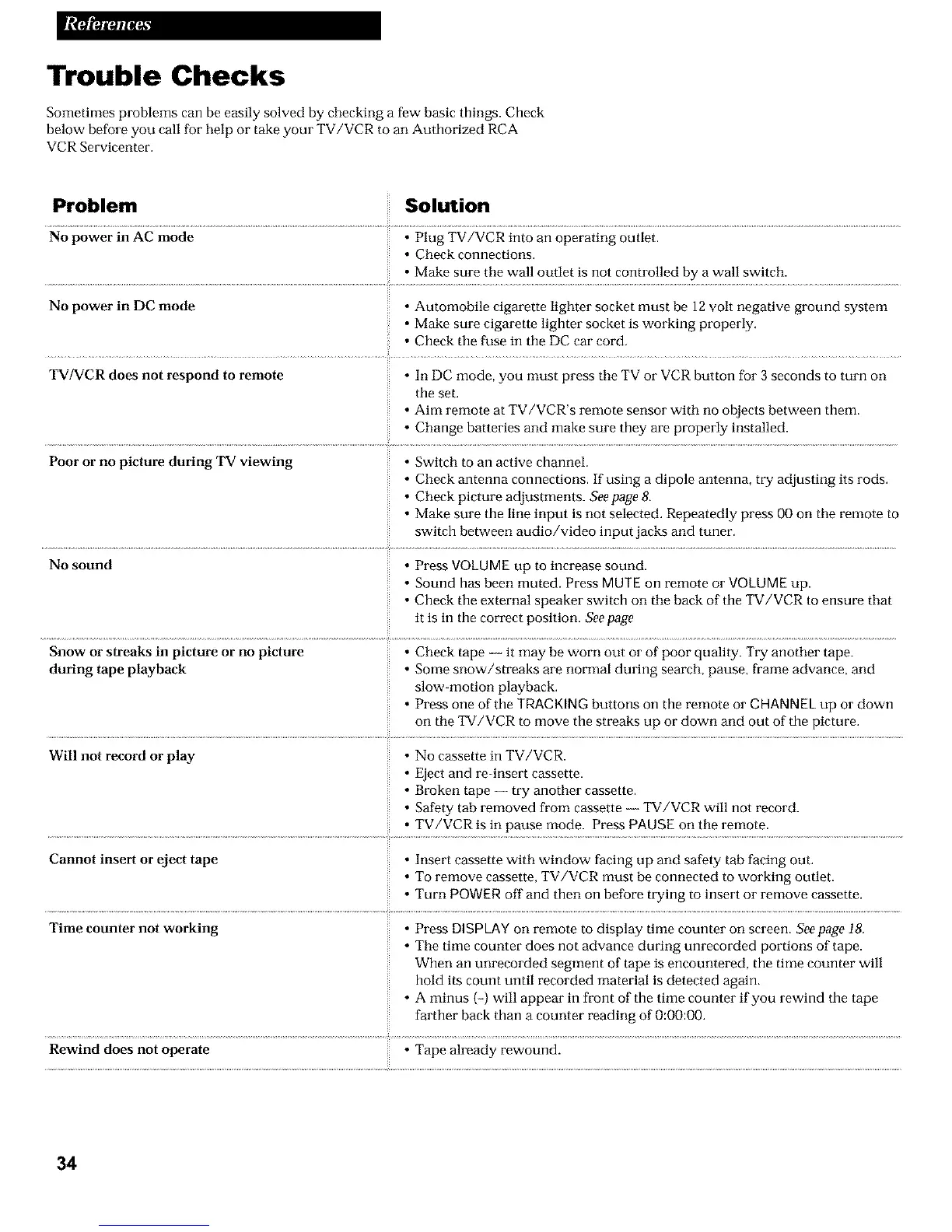 below before you call for help or take your TV/VCR to an Authorized RCA