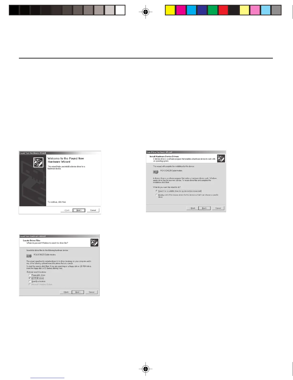 6. When the “Found New Hardware Wizard” appears, click “Next” to initiate the search for