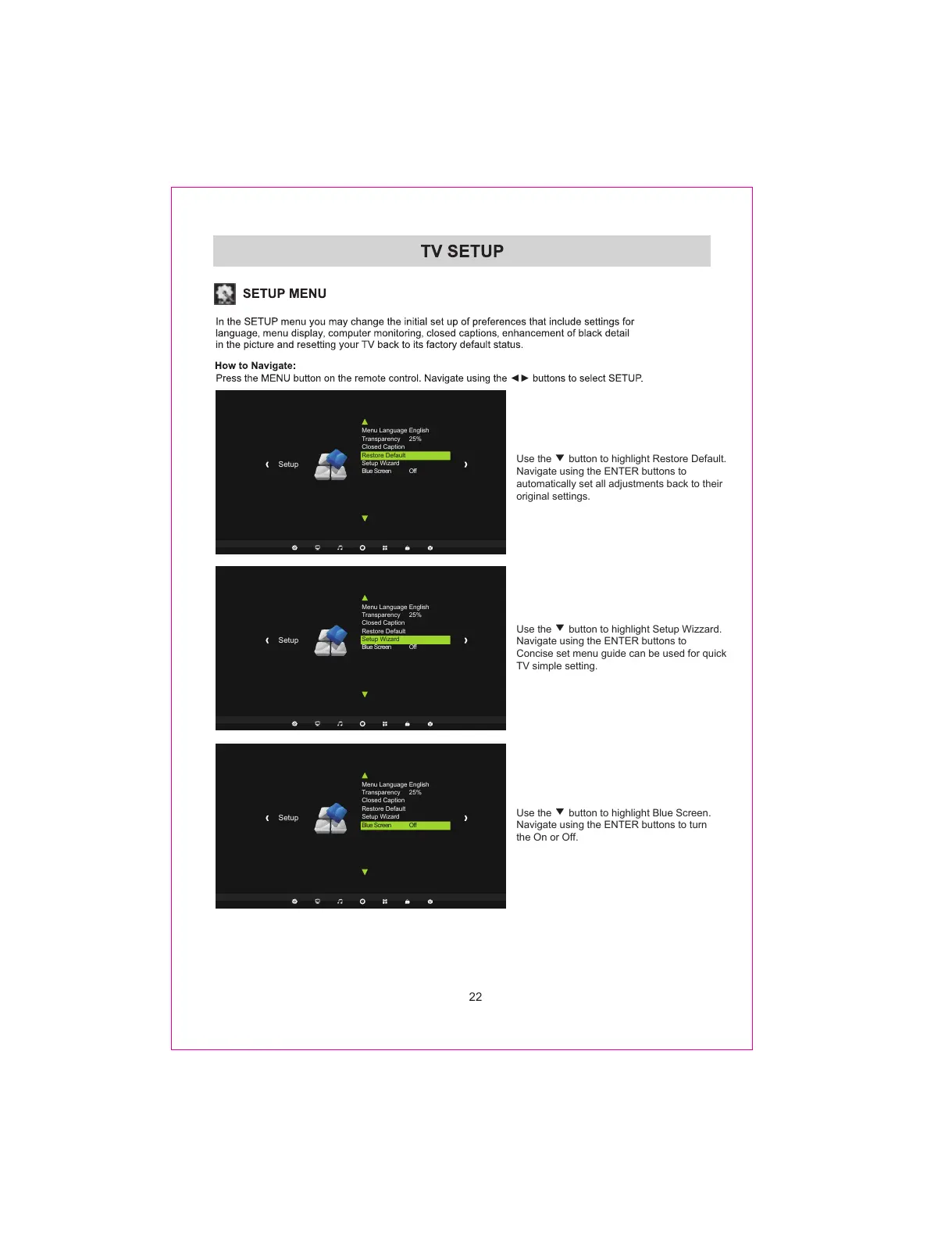 TV simple setting.