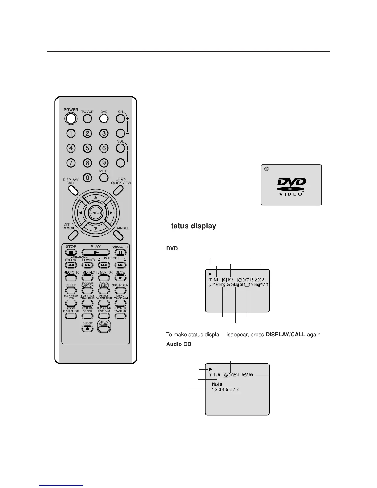 • When you play a CD disc, the status display will appear