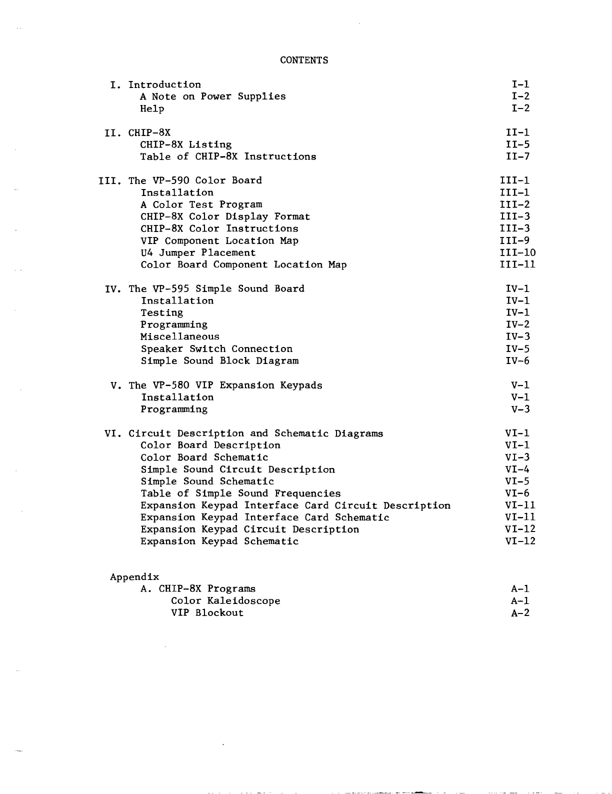 RCA VIP VP580 - Table of Contents