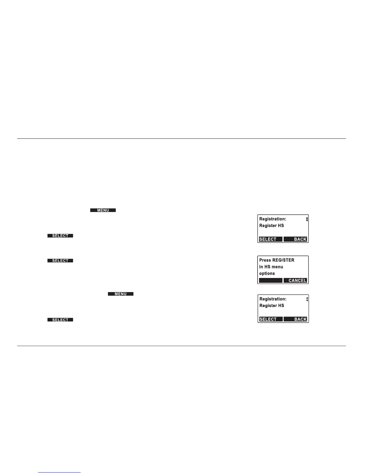 4. “Register HS” appears on the display. Have the Cordless Handset ready to