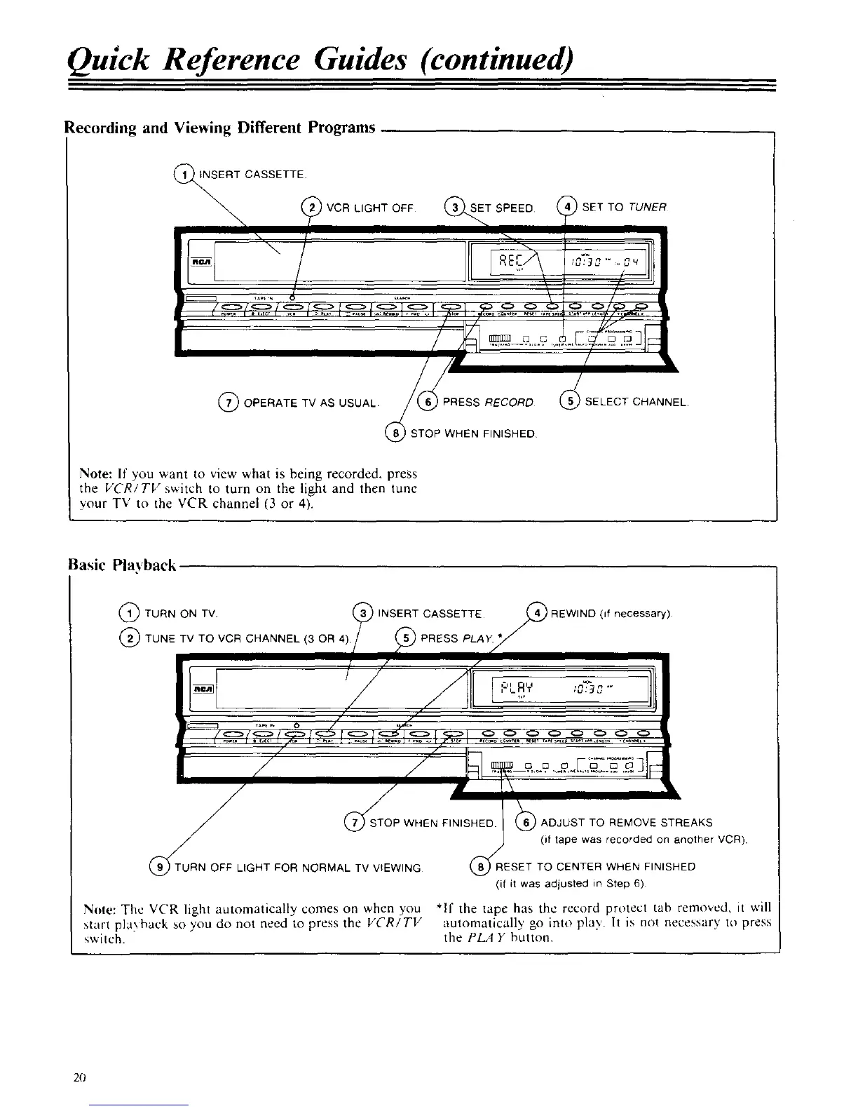 Note: The VCR light automatically comes on when you *If the tape has the recurd protect tab removed, it will