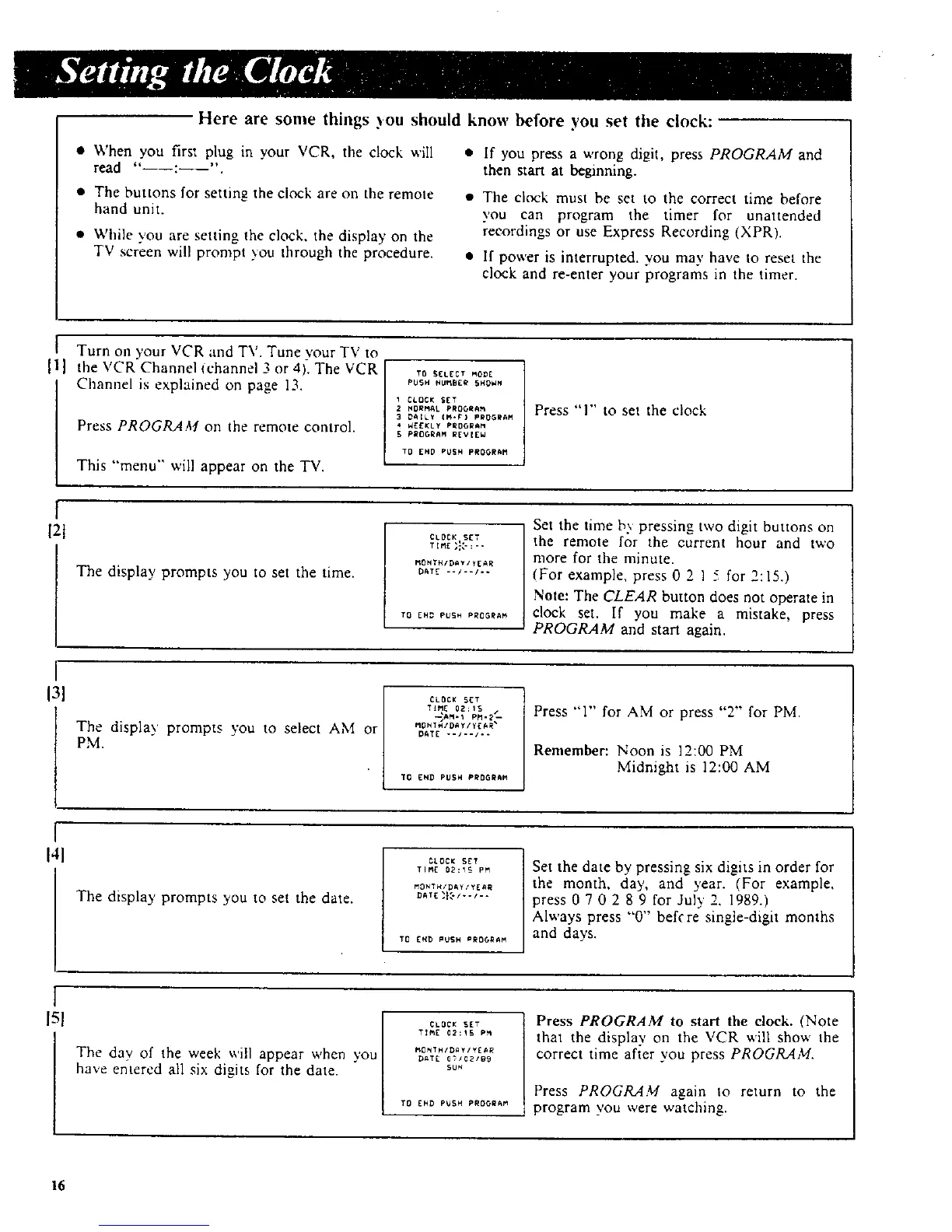 correct time after you press PROGRAM.