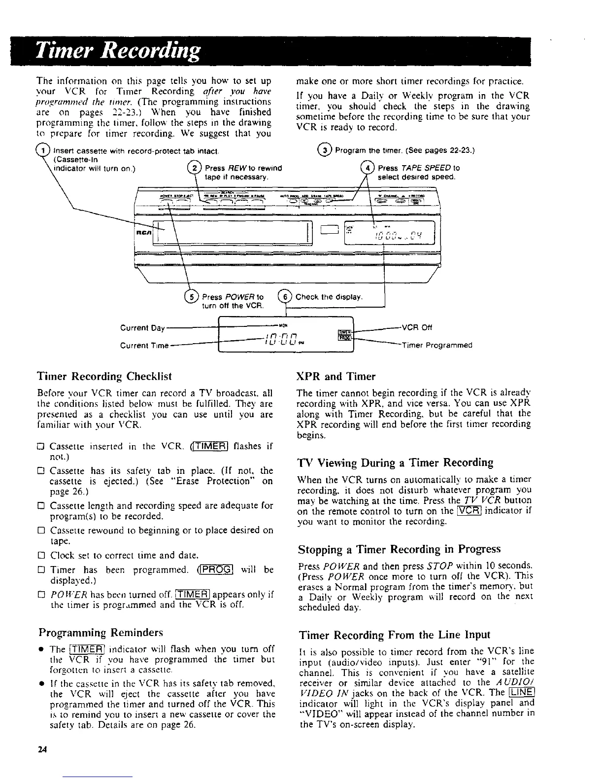the timer is programmed and the VCR is off.