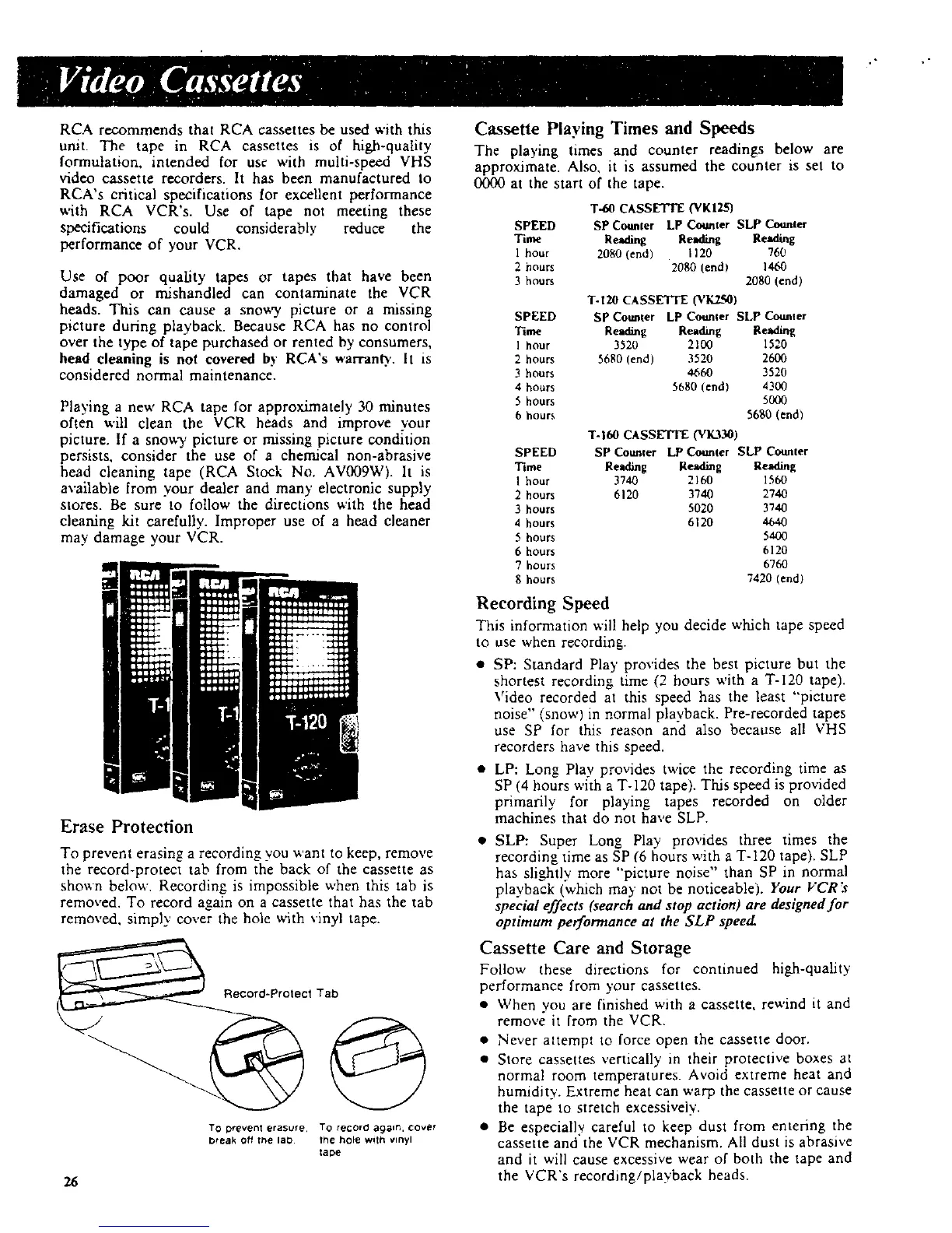 head cleaning tape (RCA Stock No. AV009W). It is