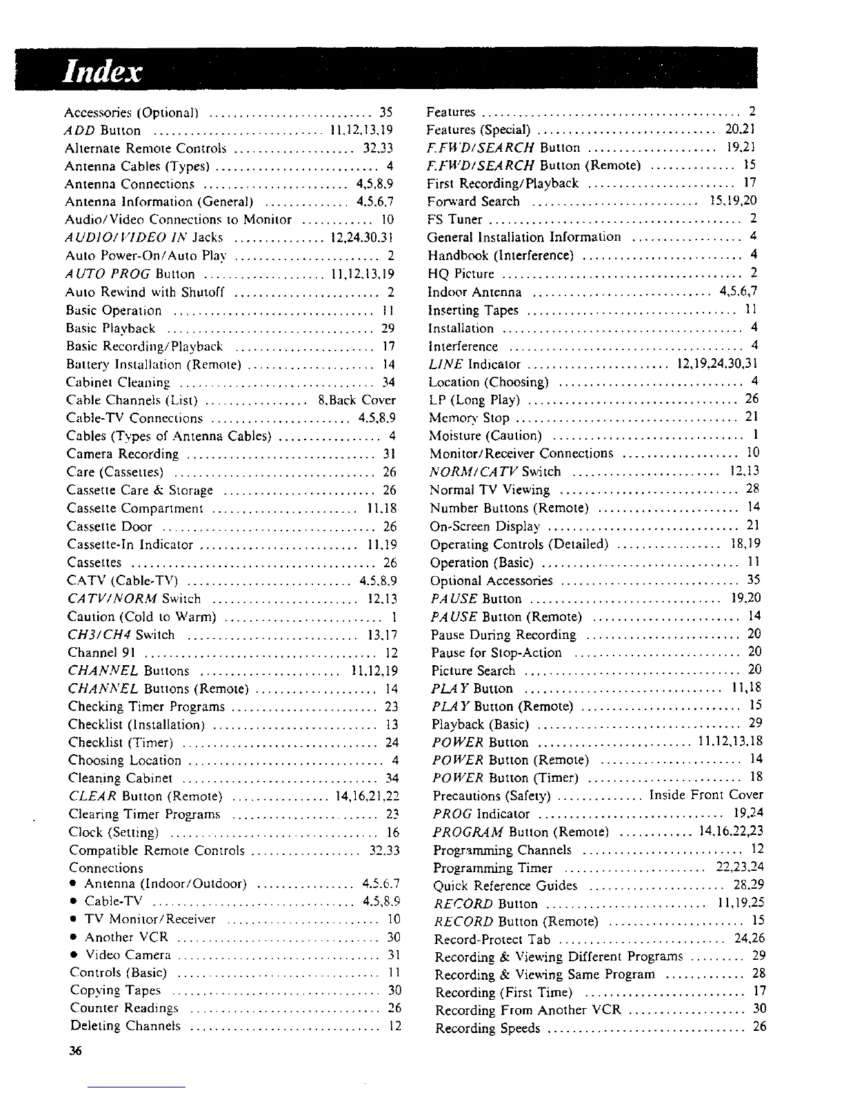 • Another VCR ................................. 30