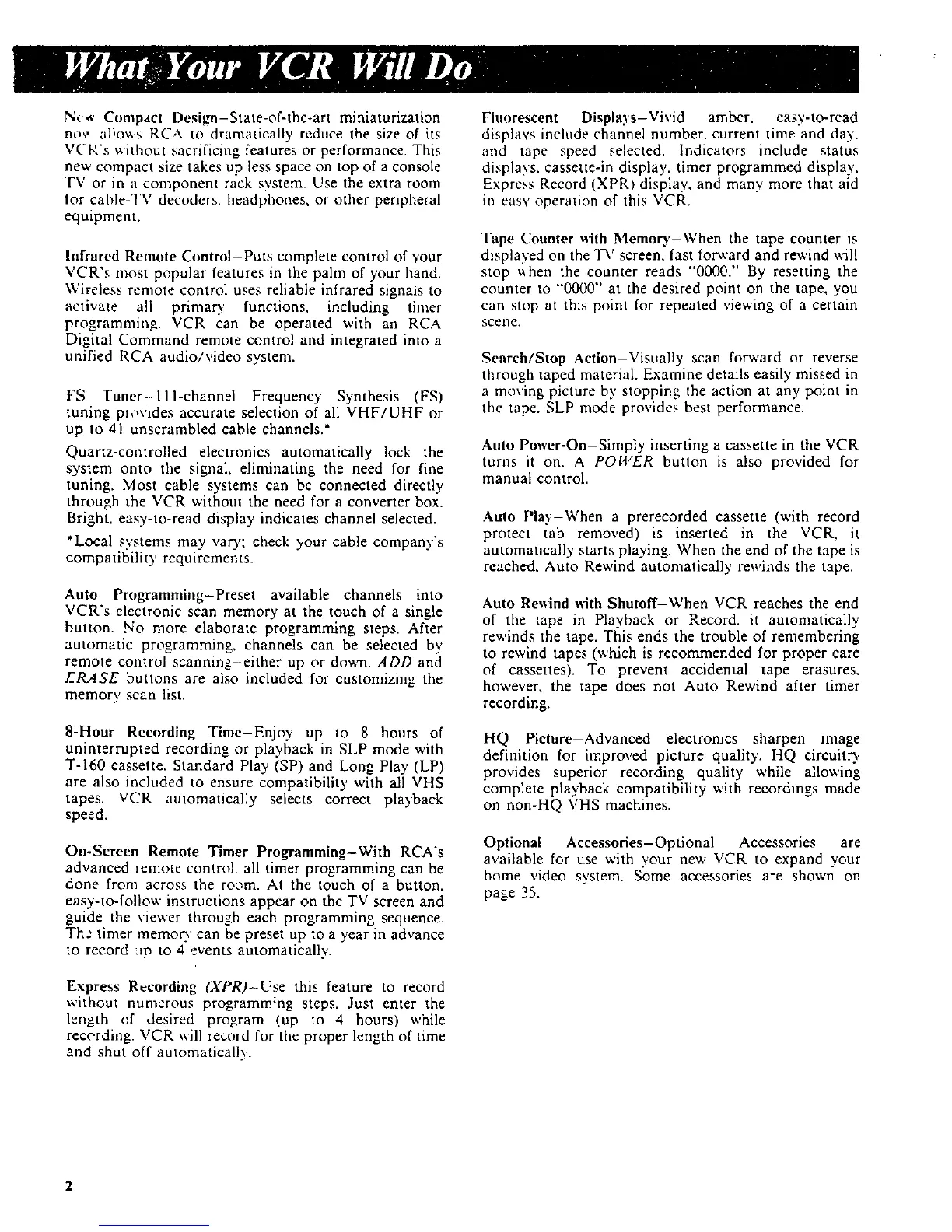 Auto Rewind '_ith Shutoff-When VCR reaches the end