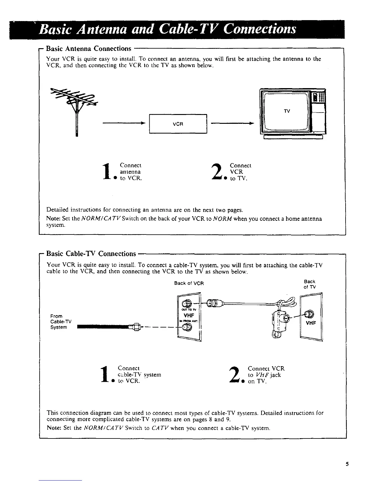 Note: Set the NORM/CATV Switch to CATV when you connect a cable-TV system.