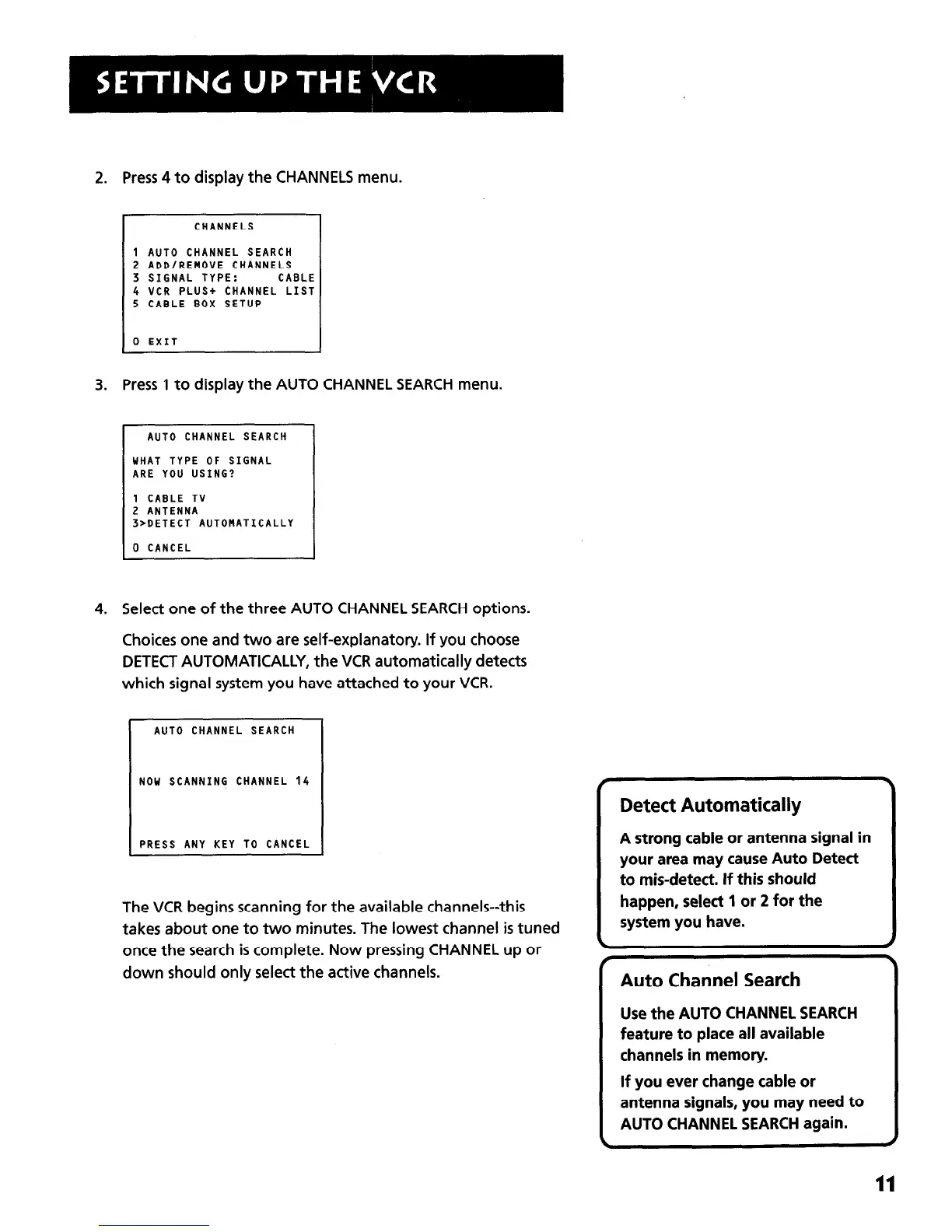 DETECT AUTOMATICALLY, the VCR automatically detects
