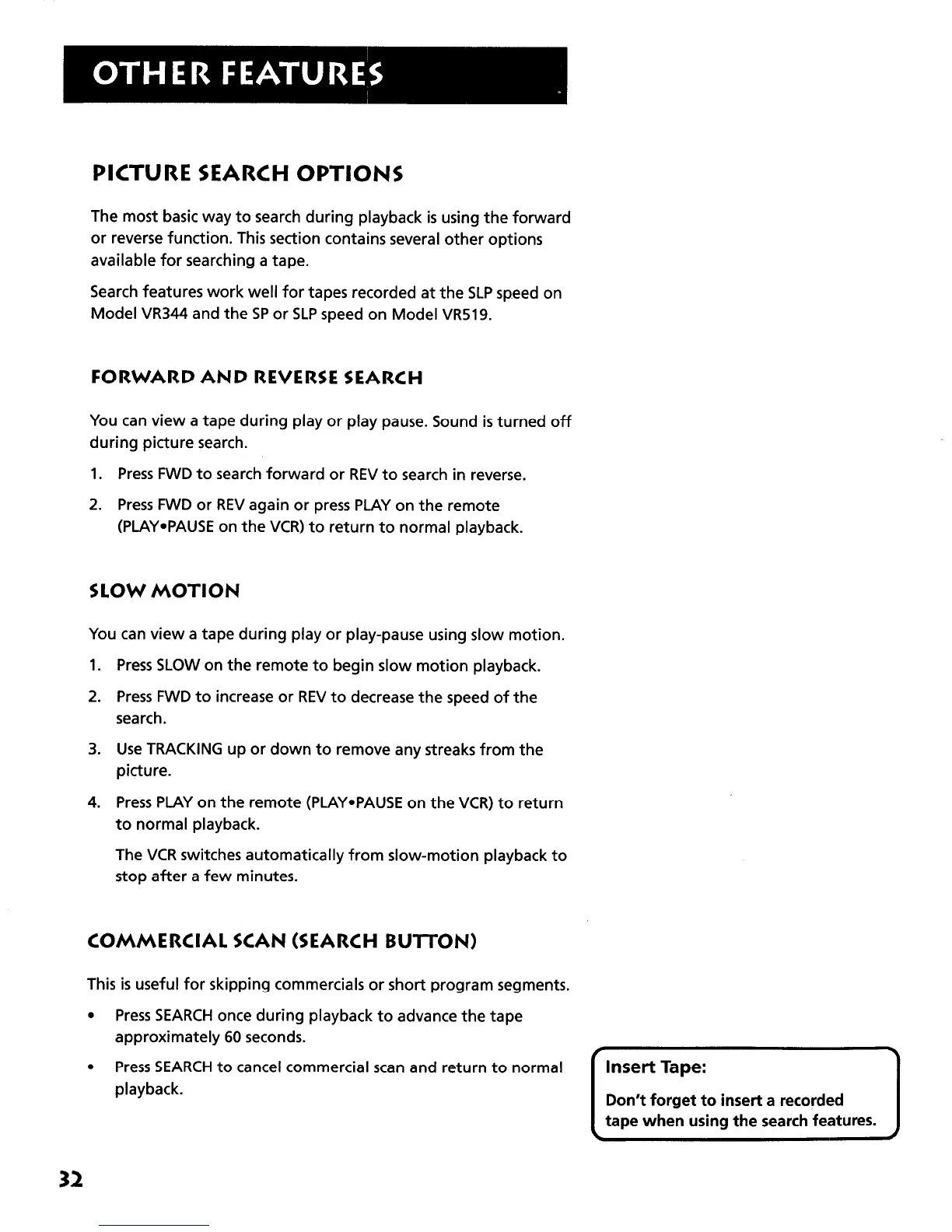 (PLAY*PAUSE on the VCR) to return to normal playback.