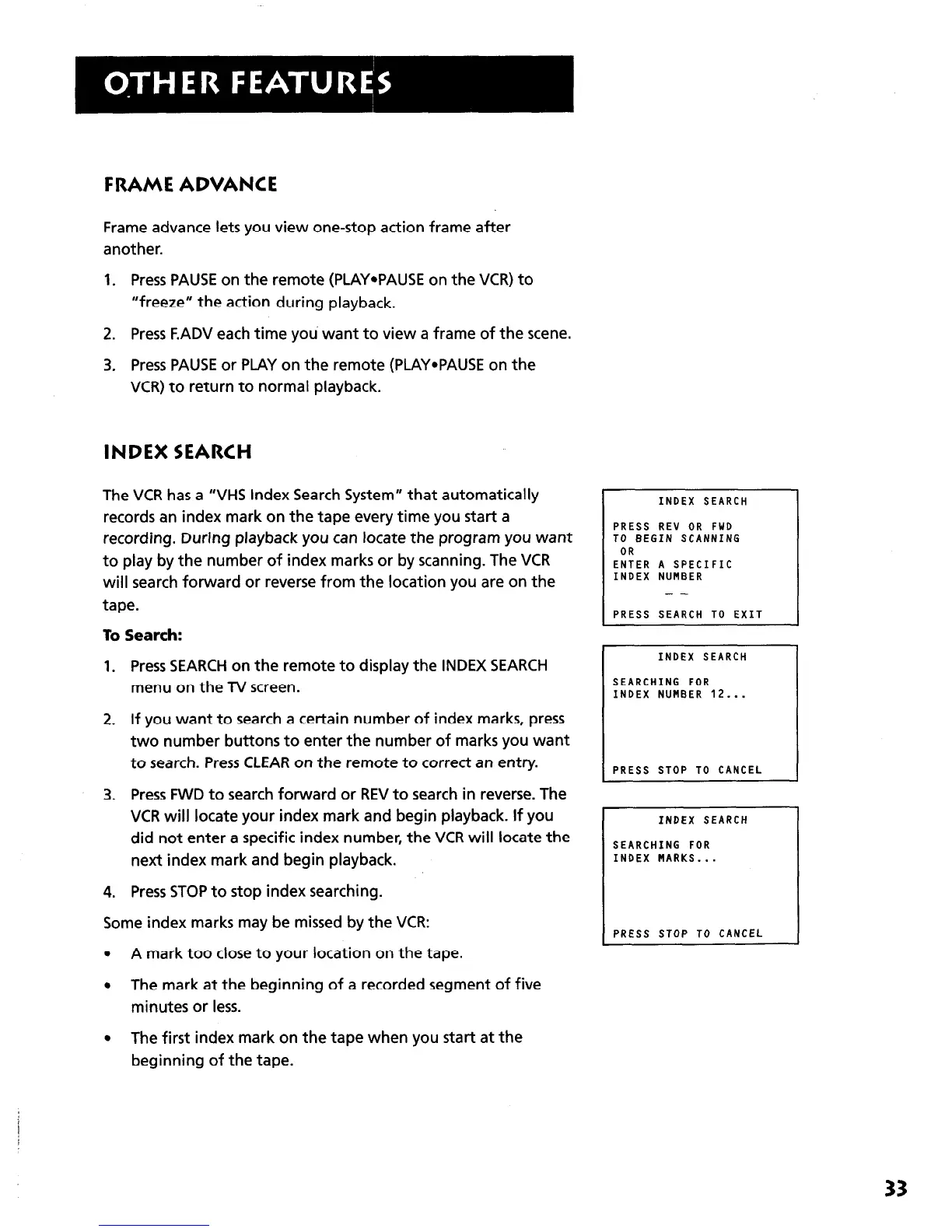 to play by the number of index marks or by scanning. The VCR