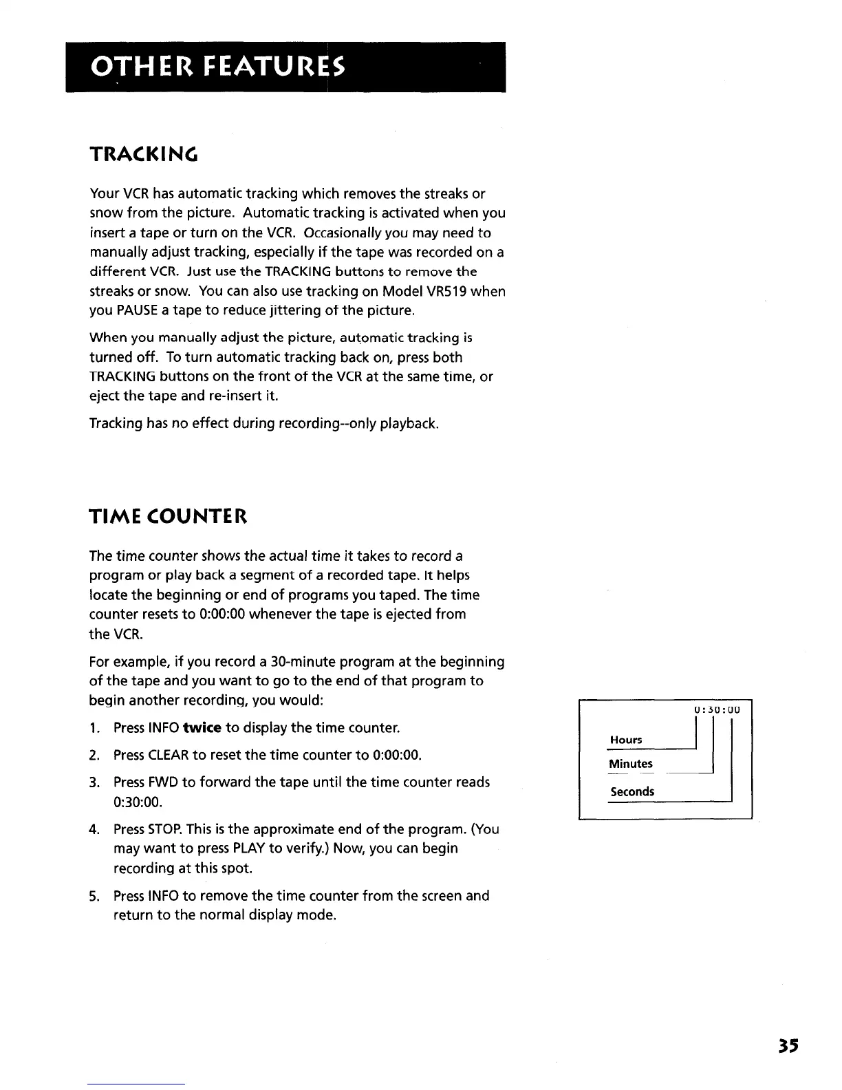 streaks or snow. You can also use tracking on Model VR519 when
