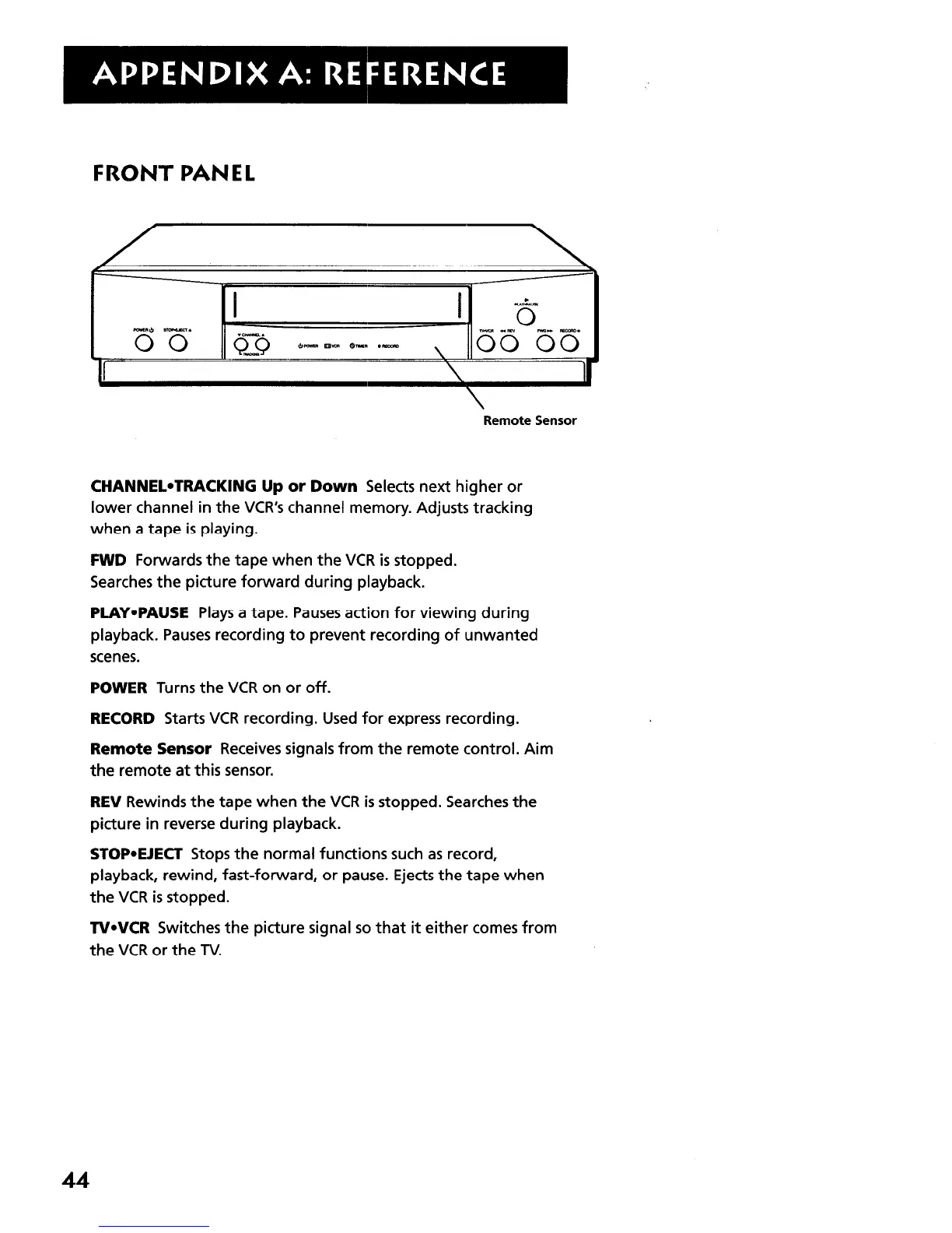 lower channel in the VCR’s channel memory. Adjusts tracking