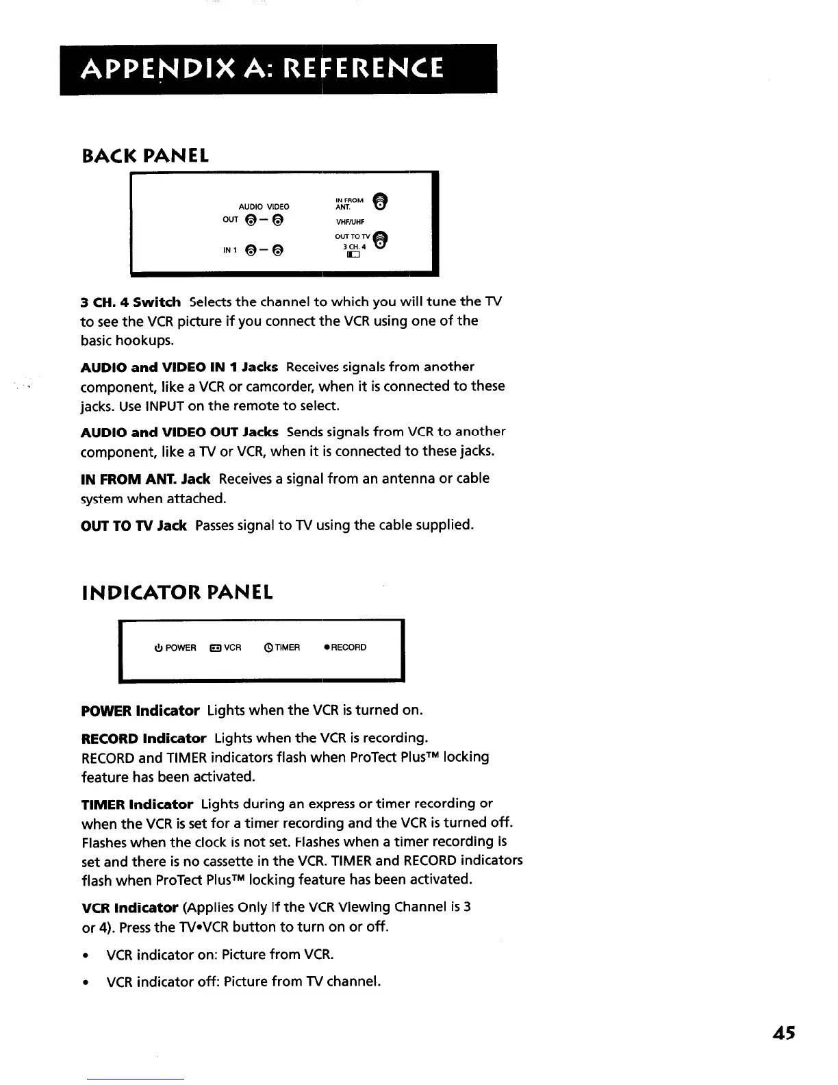 set and there is no cassette in the VCR. TIMER and RECORD indicators