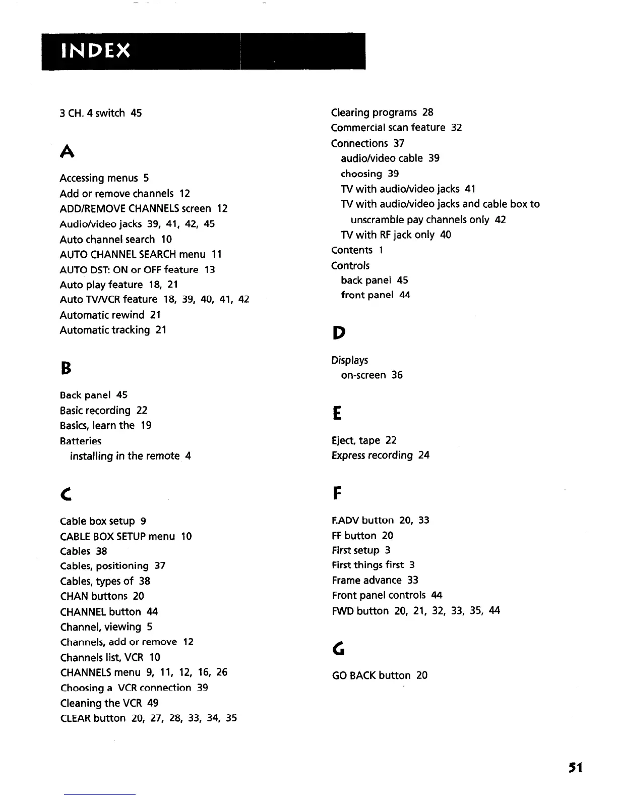 Auto TV/VCR feature 18, 39, 40, 41, 42