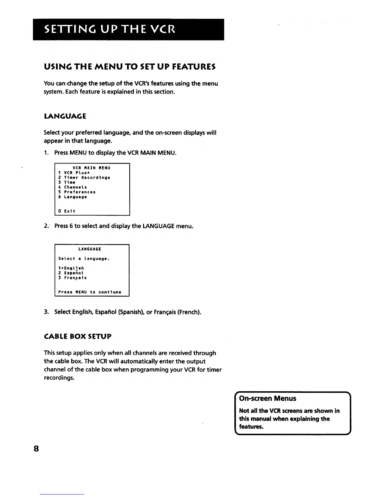 3. Select English, Espar3ol(Spanish), or Fran_;ais(French).