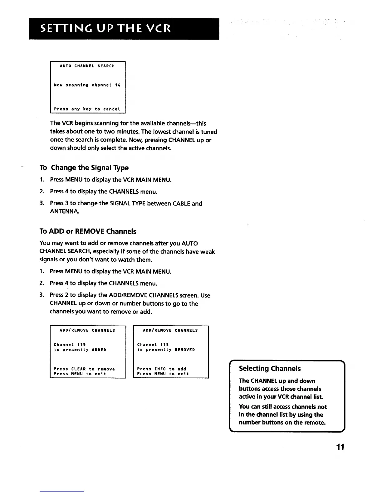 3. Press2 to display the ADD/REMOVE CHANNELS screen. Use