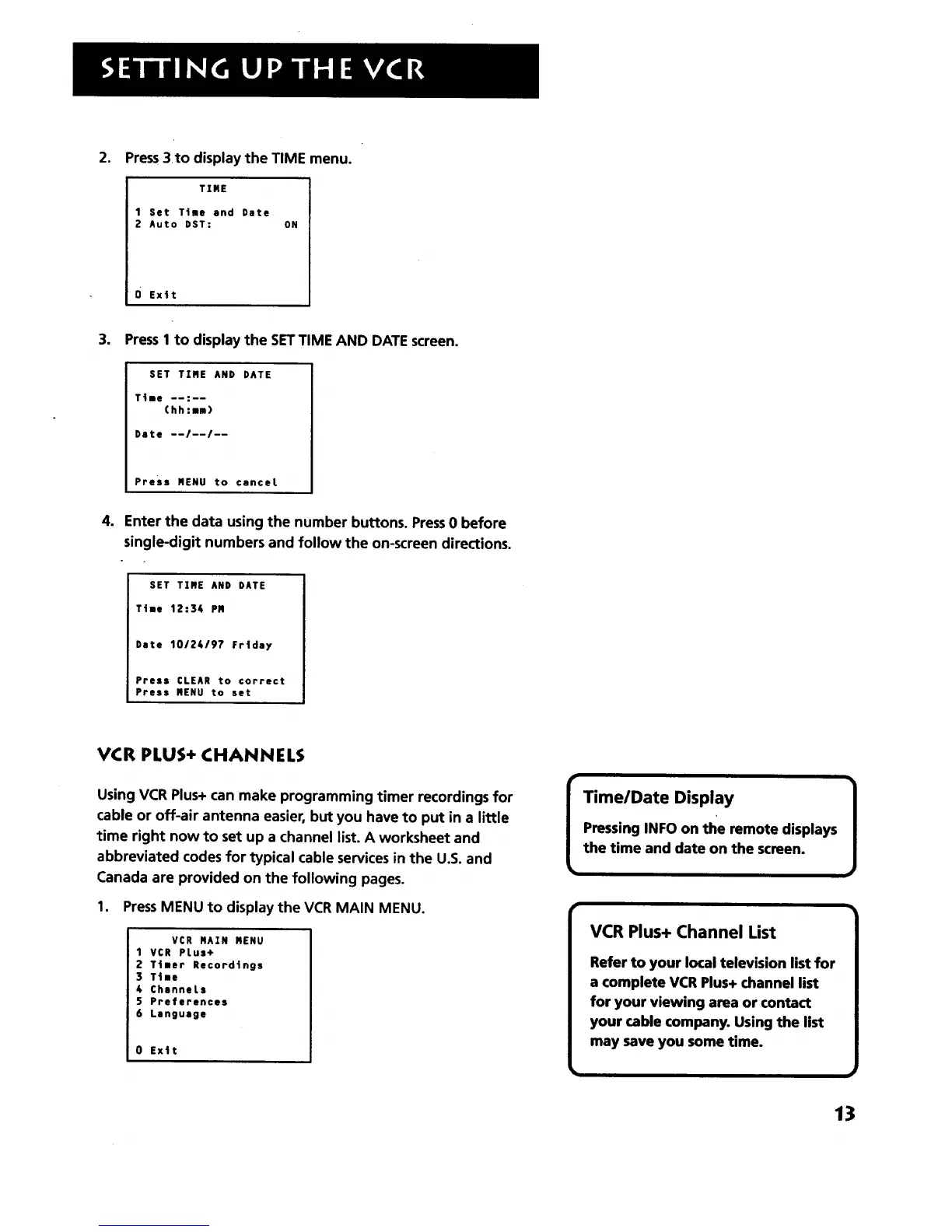 VCR PLUS+ CHANNELS