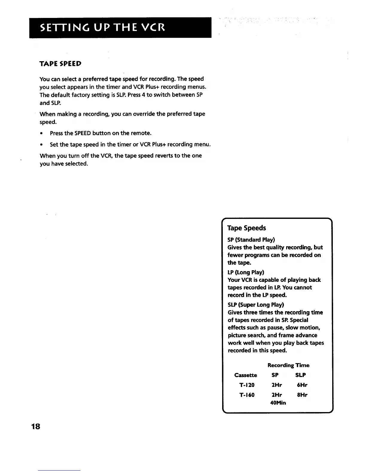 You can select a preferred tape speed for recording. The speed