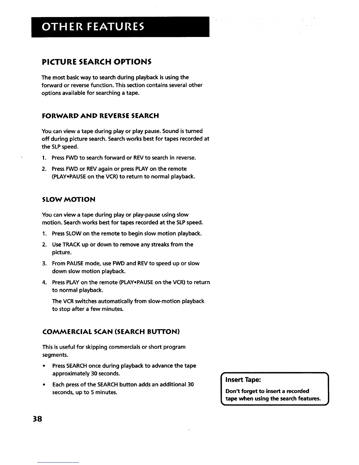motion. Search works best for tapes recorded at the SLPspeed.