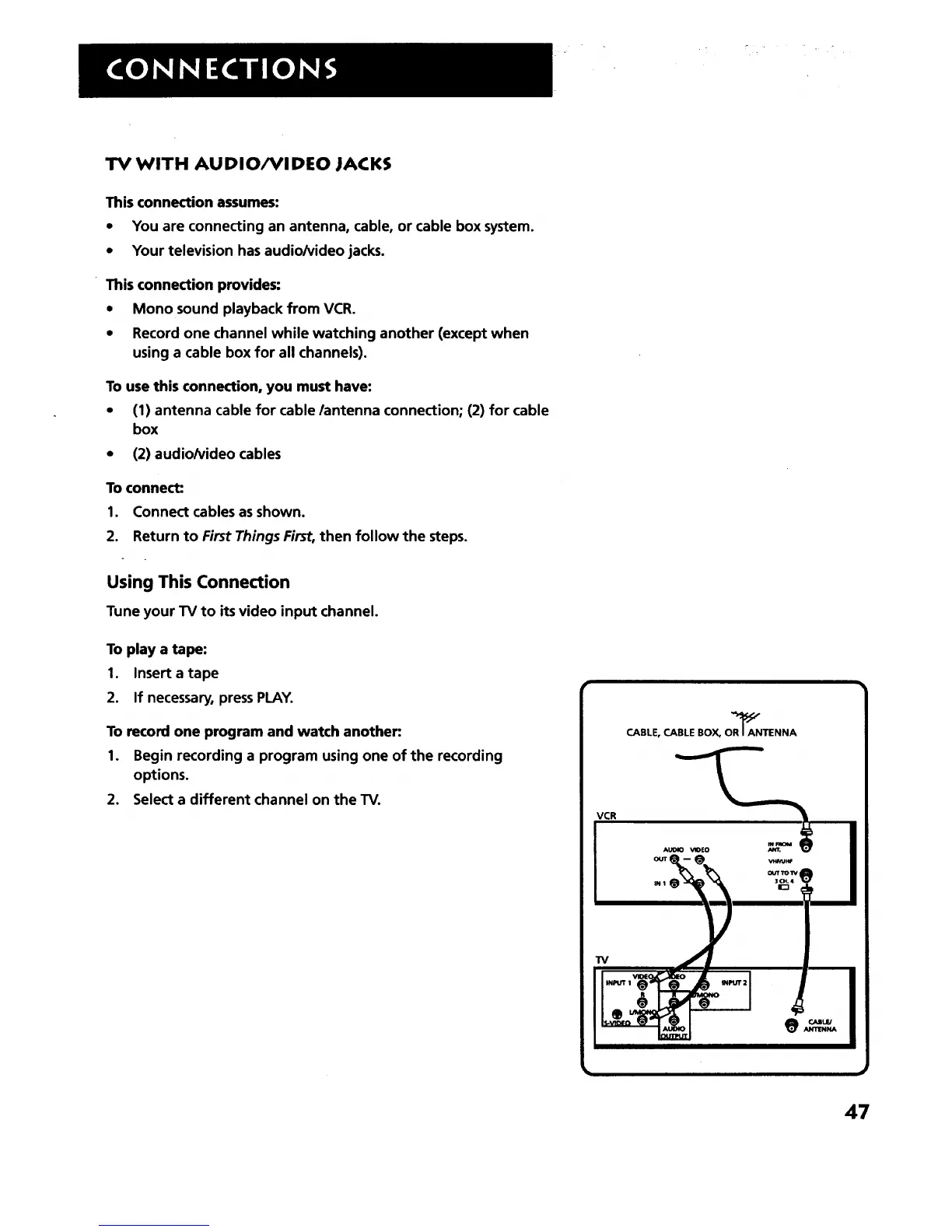 • Mono sound playback from VCR.
