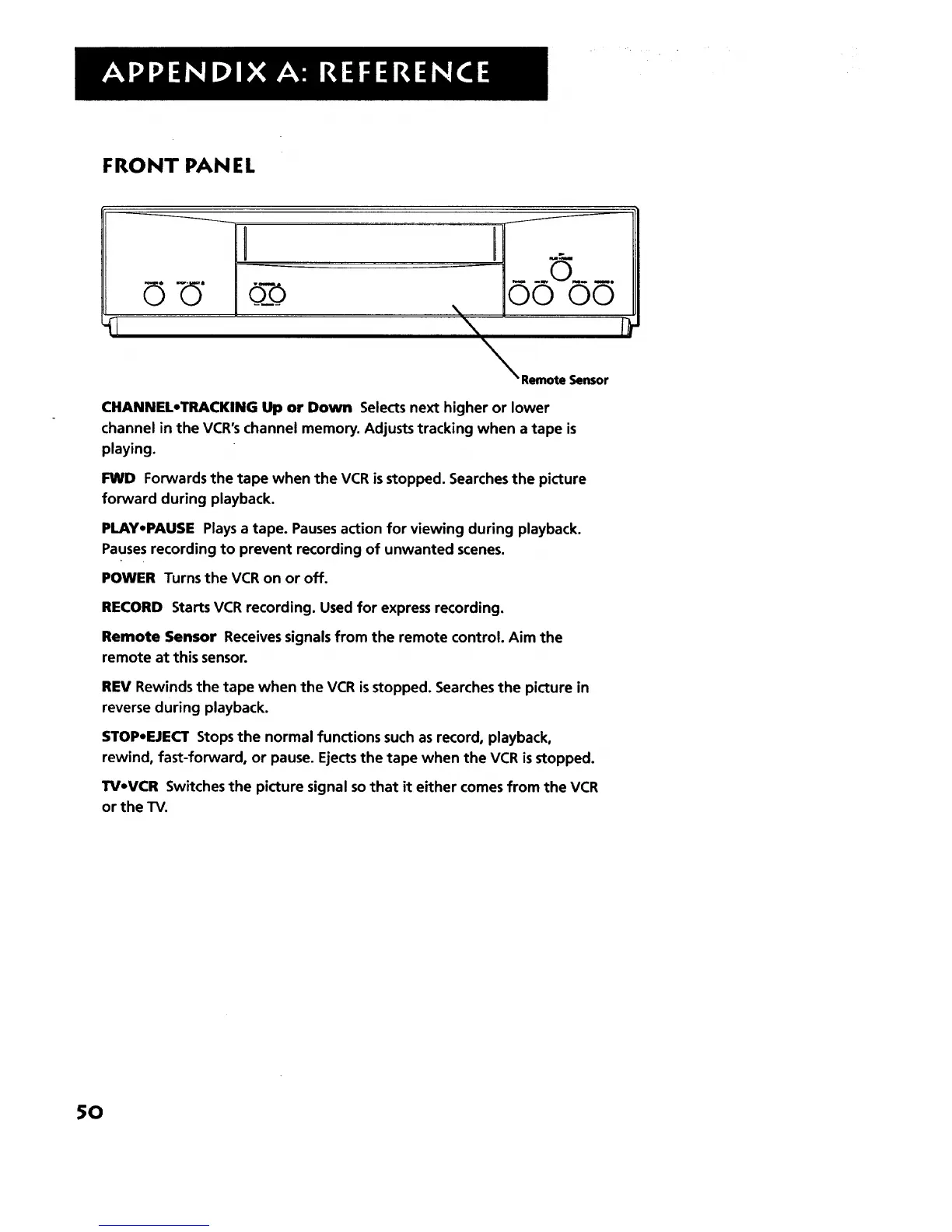 rewind, fast-forward, or pause. Ejectsthe tape when the VCR isstopped.