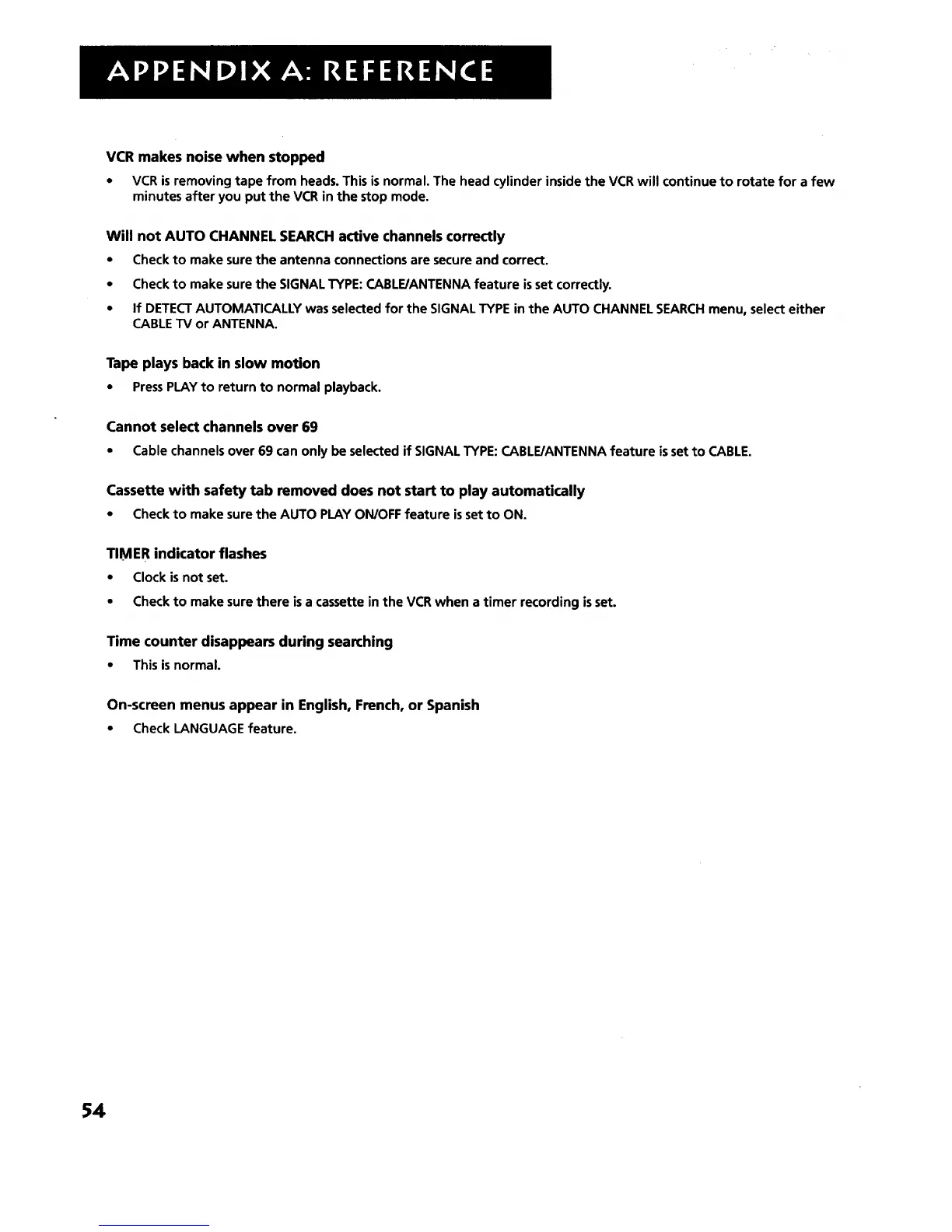 • Check to make sure there is a cassette in the VCR when a timer recording is set.