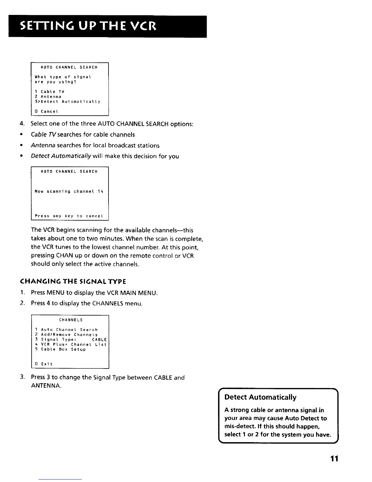 The VCR begins scanning for the available channels--this