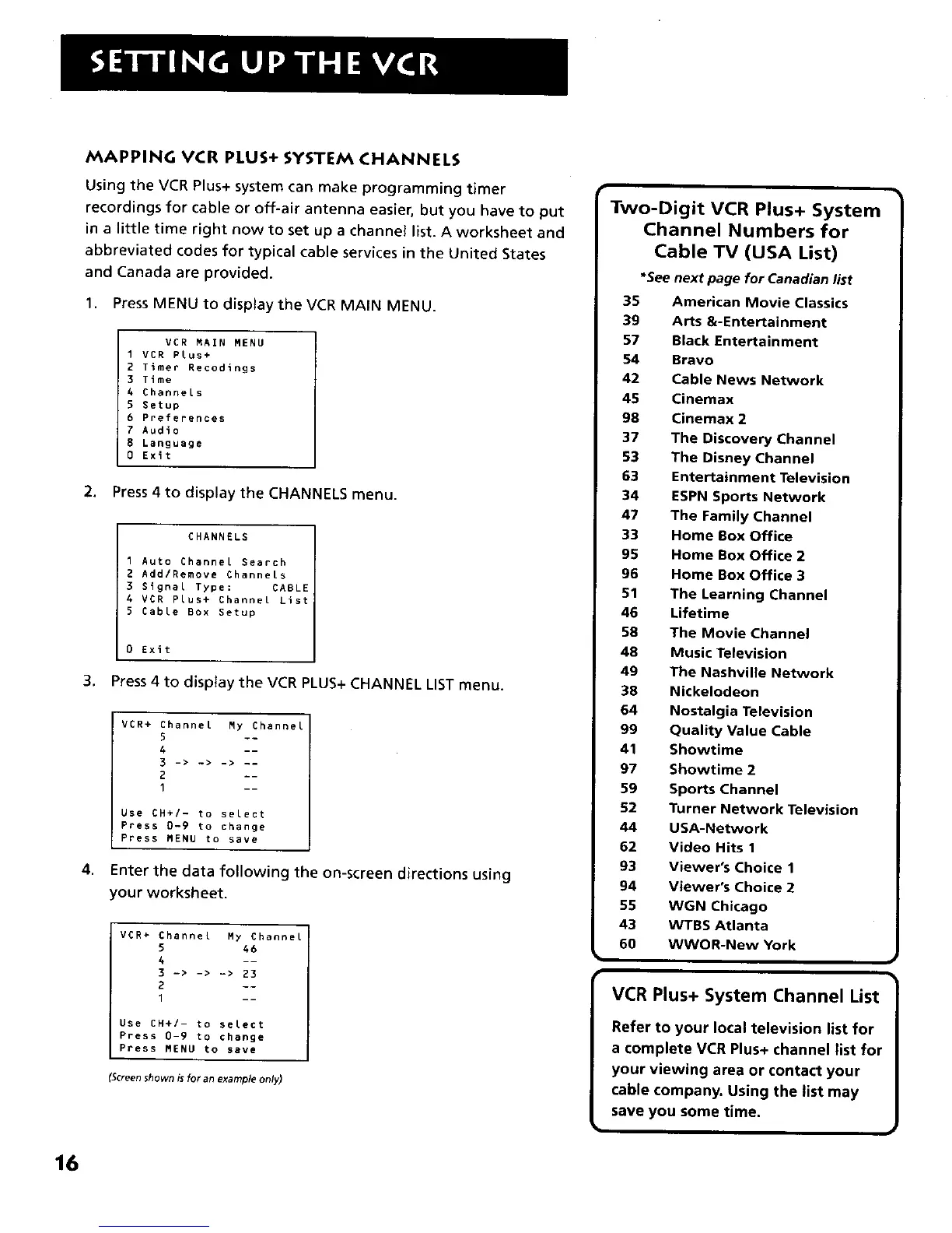 4 VCR Plus+ Channel List
