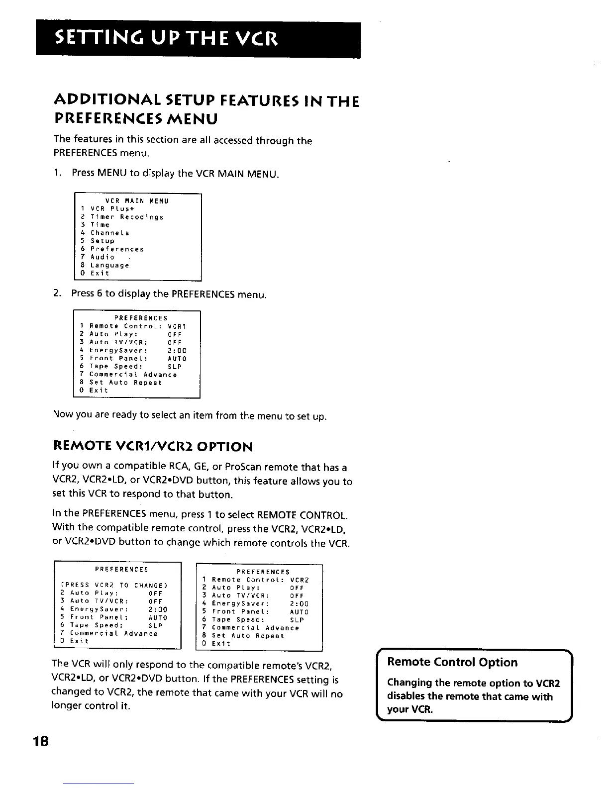 In the PREFERENCESmenu, press 1 to select REMOTE CONTROL.