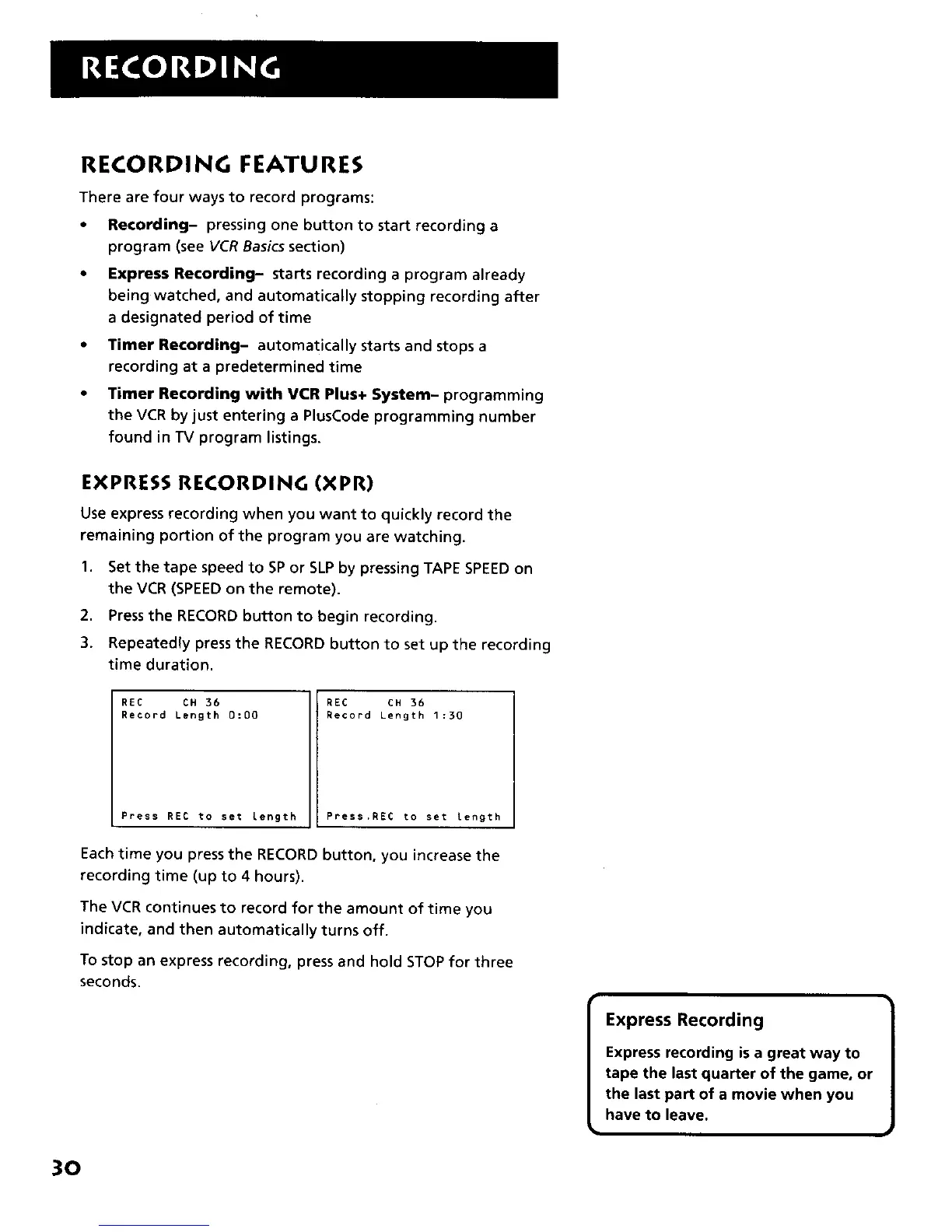 • Express Recording- starts recording a program already