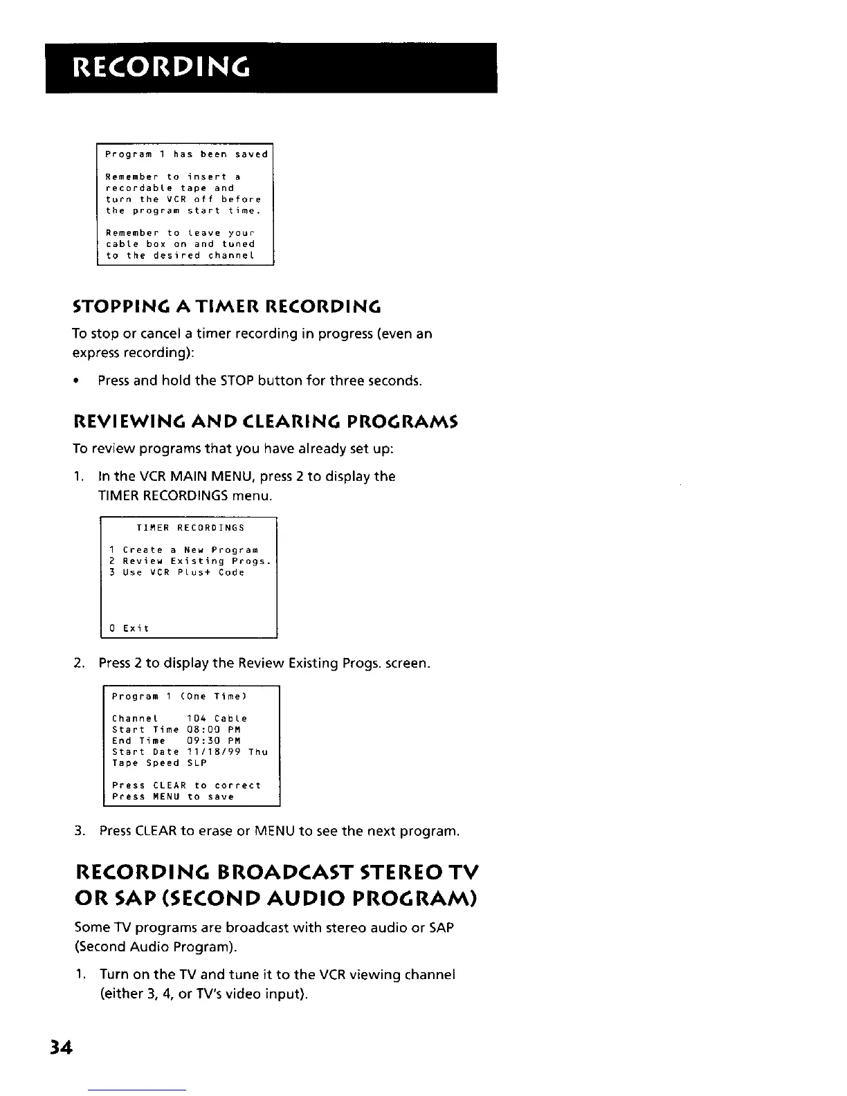 3. Press CLEAR to erase or MENU to see the next program.