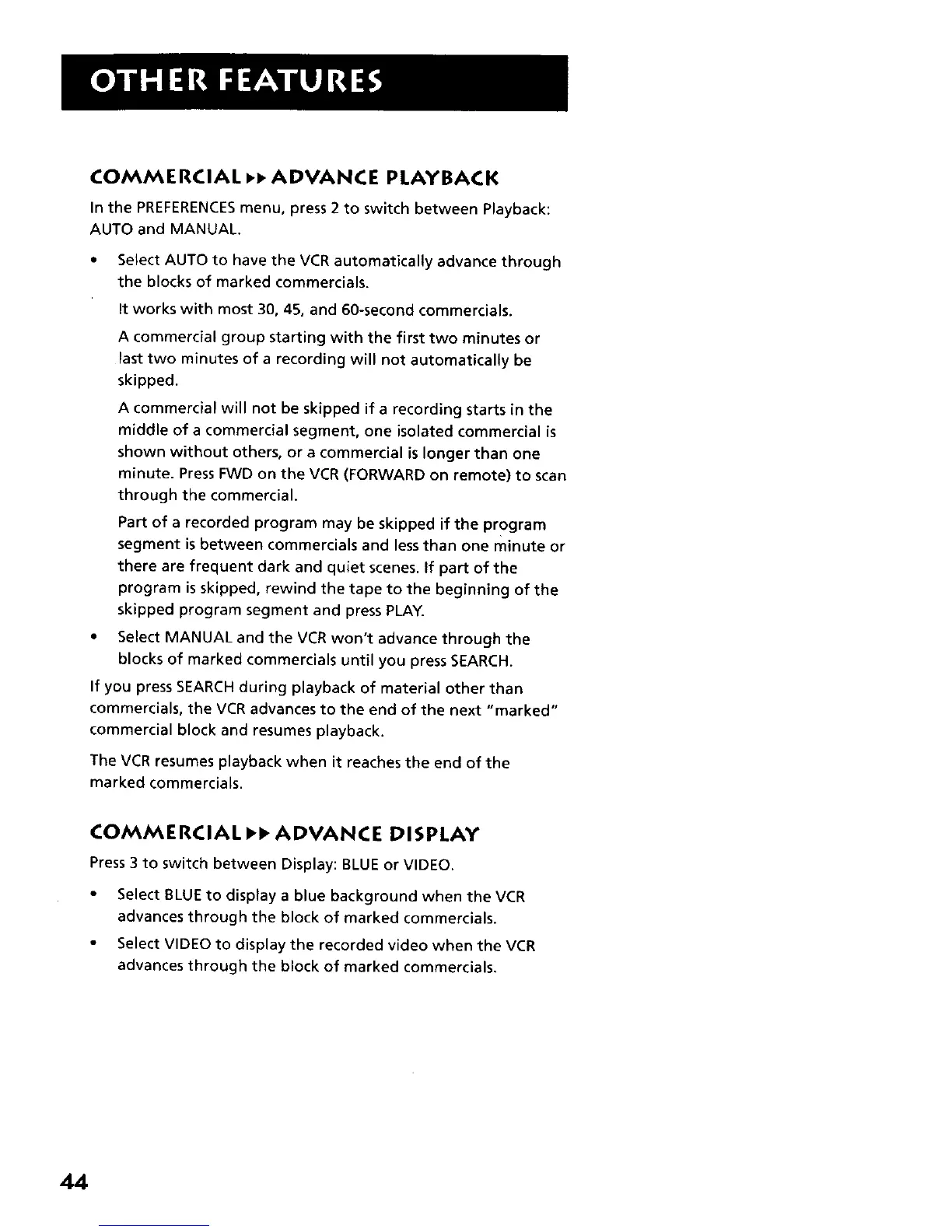 commercials, the VCR advances to the end of the next "marked"