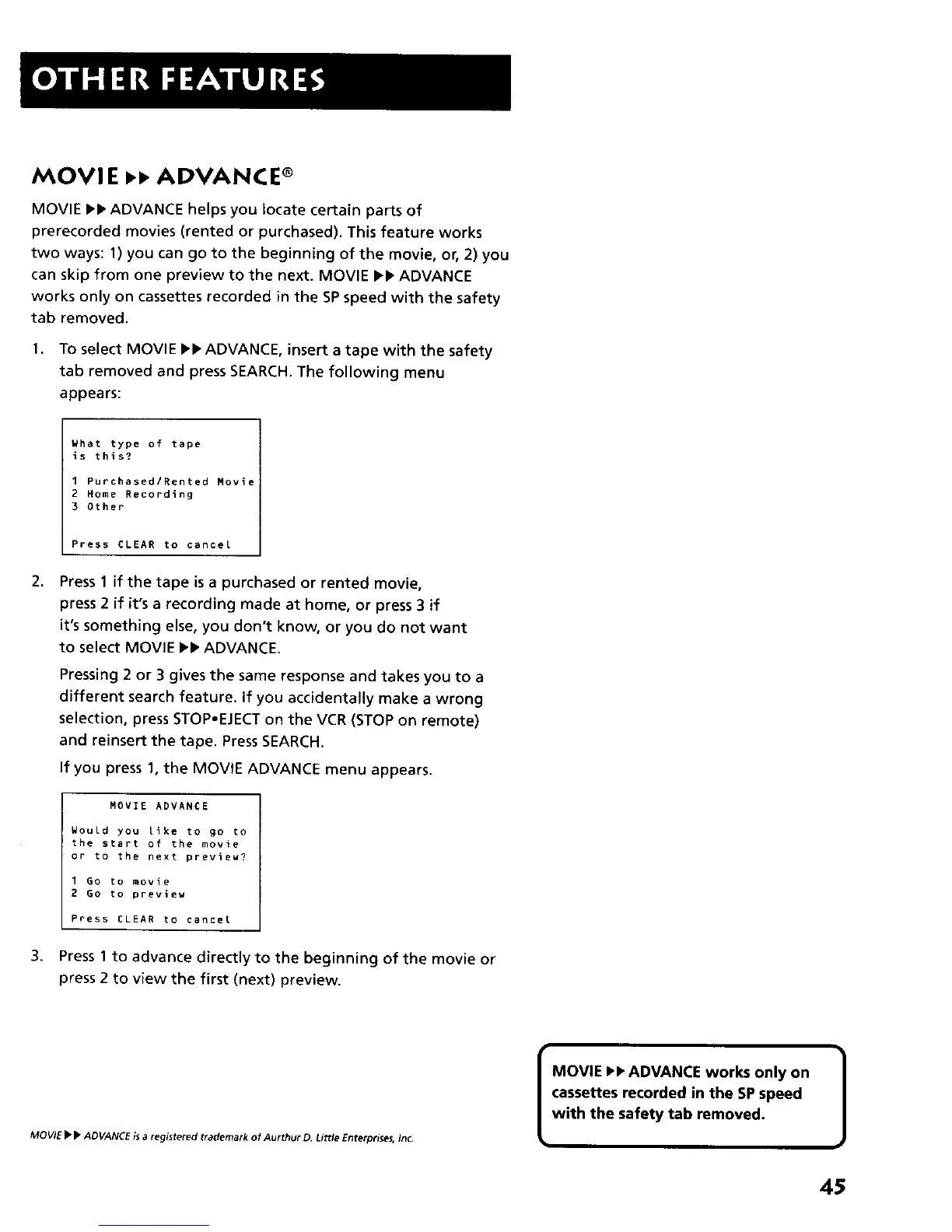 can skip from one preview to the next. MOVIE ,, ADVANCE